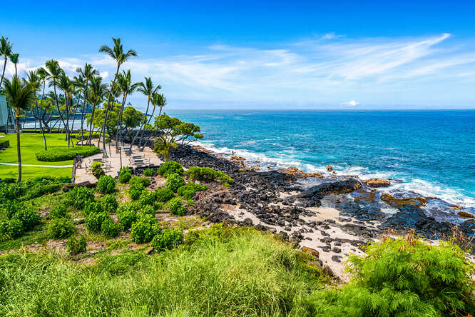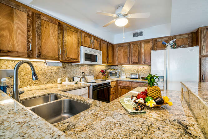 RARE FIND! Priced to sell. Almost ocean front! In the evening, relax on your lanai enjoy the lit glowing pool, the beautiful blue ocean, tiki torches burn as the famous Kona sunsets light up the sky. Listening to the waves crashing on the shore will give you a real feeling of a vacation in paradise. It's sure to give you a sense of peace immediately. Wakeup to a cup of coffee while the sun rises, watch whales breaching, dolphin's spinning all while the warm Hawaiian breeze flows through in this beautiful unit. Totally remodeled with custom mango cabinetry throughout with beautiful granite countertops! This is a showstopper and a MUST SEE! Casa De Emdeko at its finest!