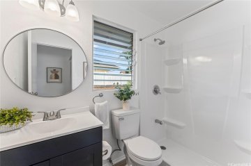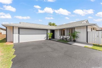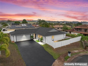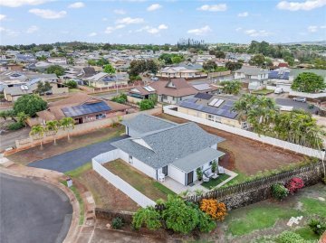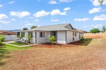 Well maintained Mililani Area single level three bedroom, two bathroom 1,722 square foot single family home on 6,000 square foot lot. Two car carport. Recent major upgrades include 27 owned PV panels + two 10 kilowatt hour batteries, $35 monthly electric bill on average. Solar water heater. Mostly custom roof (87 per cent) with 50 year transferrable warranty. Three window ACs with wifi access. Fourth AC on remote. Newer kitchen appliances and upgraded washer and dryer with steam. Toilets with bidets. Four wall-mounted TVs. All items in photos are included in the sale at NO COST to the buyers. Large covered front patio for your evening entertainment. Fully enclosed garden with banana, dragon fruit, key lime and papaya trees. Storage shed in back yard. Quiet neighborhood close to shopping, parks, pools and Kam Hwy. Hurry before it's gone!