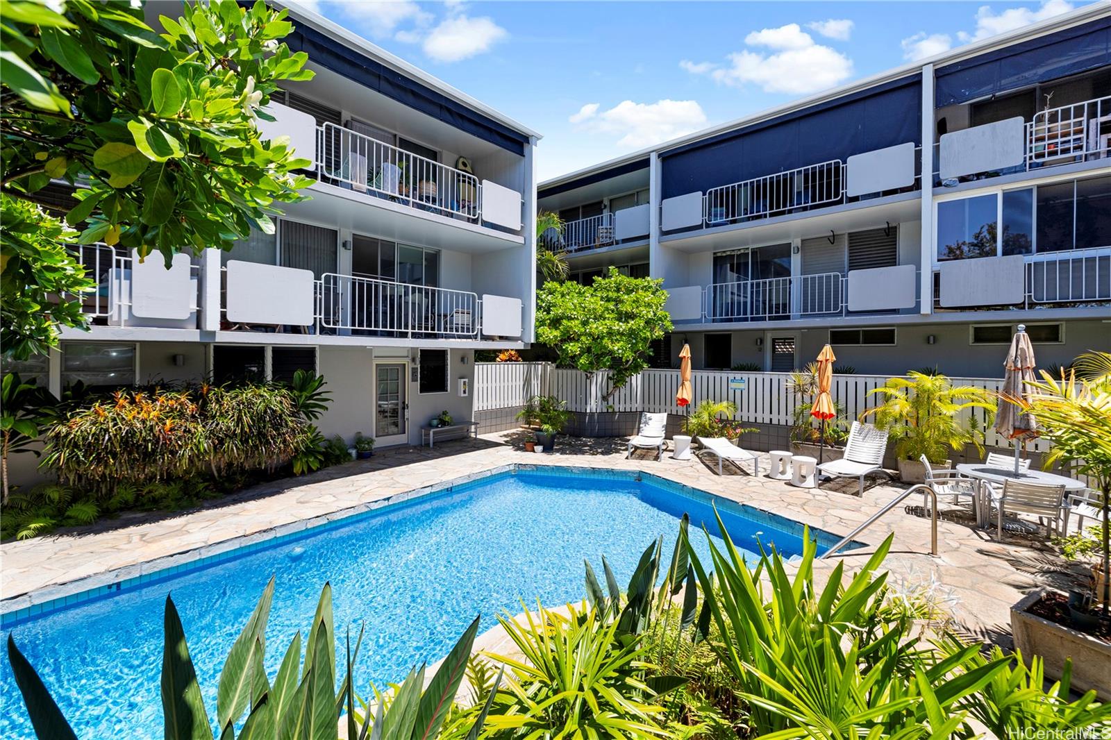 Fall in love with Pualei Circle!! ONLY active listing under $400,000 in this neighborhood. Great opportunity to live in the Diamond Head area and experience all it has to offer. Close to Kaimana Beach, Kapiolani Park, the Honolulu Zoo and so much more. This unit has been freshly painted & ready for it's new owner to call it home. Unit is sold As-Is.