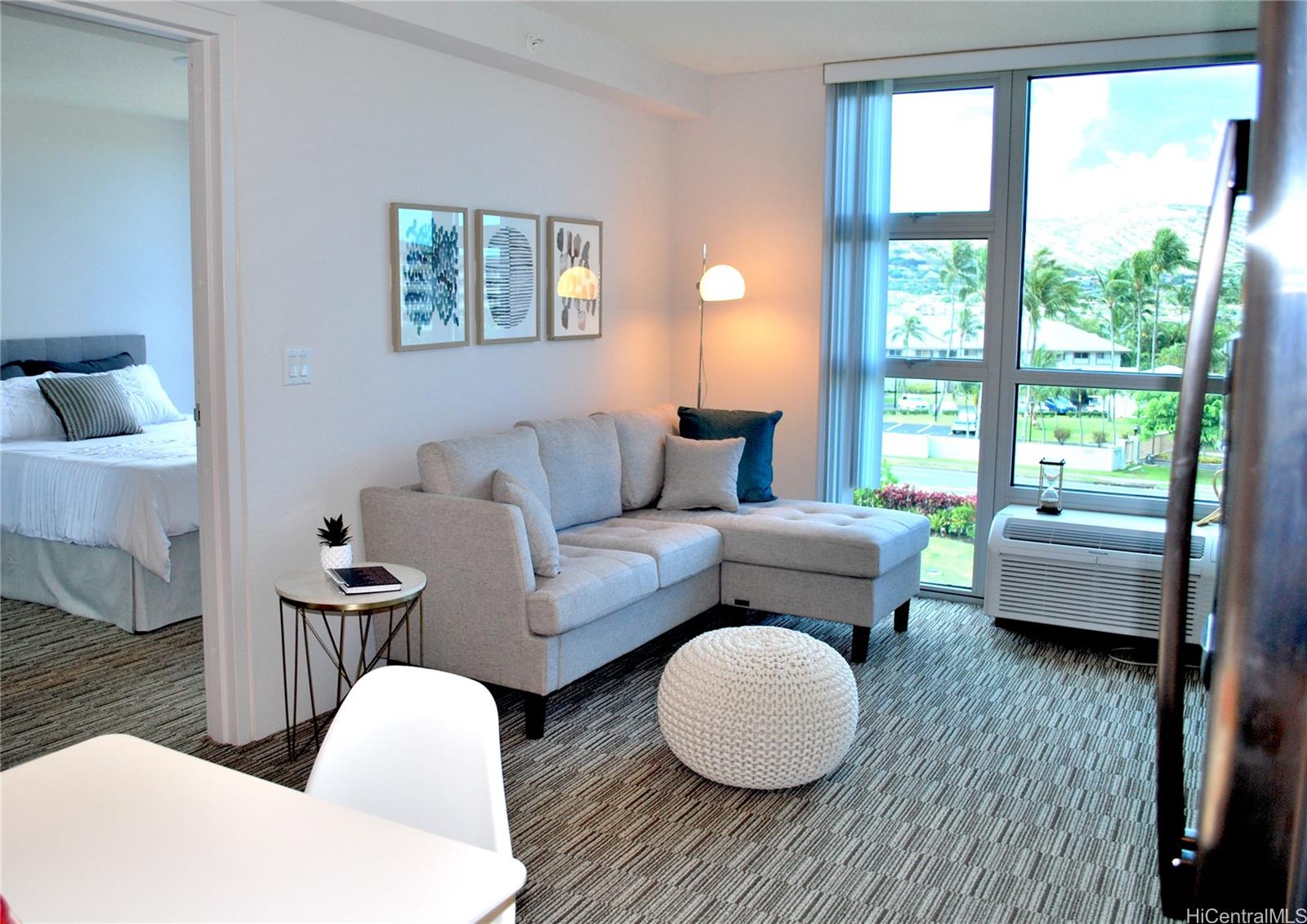 Spacious one-bedroom plus den with a garden view! This unit offers a great opportunity to create an at-home office space or another room. This is a move-in ready home, inclusive of stainless steel appliances, Grohe fixtures, window A/C, washer/dryer in unit, PawSpa and TWO parking! Take advantage of the versatility of our 1 bedroom PLUS a den. Hale Ka Lae offers great amenities with low maintenance fees. *Pictures are staged, may not reflect the actual unit.