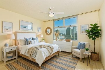 Light, breezy 2 bedroom 2 bath condo in exciting Kakaako is ready for a new owner! Spacious, sunny corner unit with city, mountain and Punchbowl views is conveniently located near Downtown Honolulu, the Capitol, hospitals, HECO and all of the activities in the Kakaako and Ward shopping areas. Amenities include a pool, hot tub, sauna, BBQ area, meeting room and a workout room.