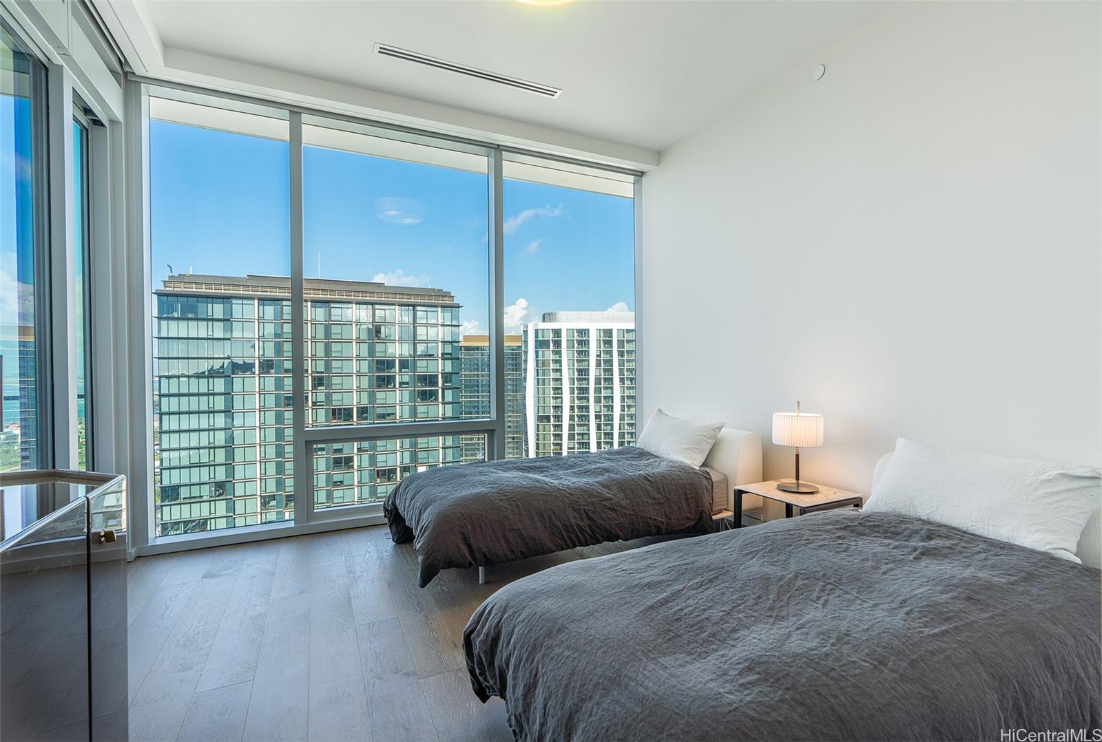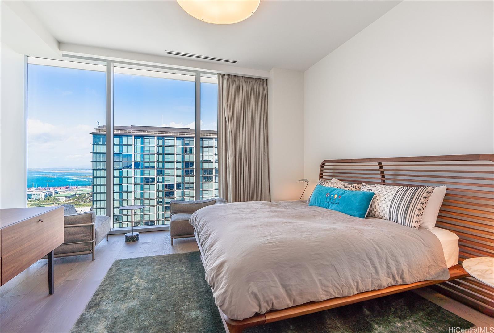 Waiea, the luxurious flagship building in the heart of vibrant Kakaako. This is a rare opportunity to own and reside in this expansive three-bedroom penthouse residence, featuring a private elevator entry with an elegant foyer, a spacious den, three-and-one-half baths, and impeccable finishes throughout. Soaring 12-foot ceilings, Miele appliances, double glazed Low-E glass, motorized window shades, hardwood and stone flooring, and top-of-the-line plumbing fixtures by Dornbracht and Toto. Storage Room 3-15 is included. Enjoy world-class amenities including guest suites, a state-of-the-art fitness center with yoga room, steam sauna, golf simulator, infinity-edge ocean view pool, hot tub, children’s play area, and dog park, all complemented by exceptional building management and outstanding service provided by the building team. Ideally located near Whole Foods, Ward Village shops and restaurants, and Ala Moana Beach Park.