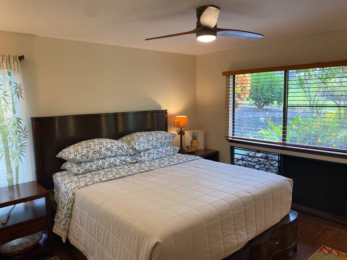 Enjoy rural, unspoiled Hawaii with peace and comfort at unit#37 in Colony One. The uniqueness of this Polynesian style condo with a modern flair is that it is a single floor plan, no stairs and a bonus being that it is an END UNIT with no one living above or below, which makes this property feel more like a house. There is so much to offer in this alluring tranquil space that is one of the largest units in the complex.