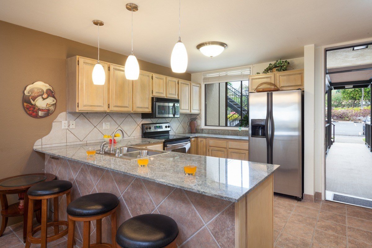 Imagine having your own place in Hawaii to relax and get away from it all! Now offered is this beautiful and tastefully refurbished condominium at Country Club Villas located along the 18th Fairway of the Kona Country Club. This easy access bridge unit boasts a tropical ocean view from the large lanai, master suite, living room and kitchen! The spacious lanai is the perfect place to read a book, have dinner with friends or nap while enjoying Hawaii's balmy breezes.