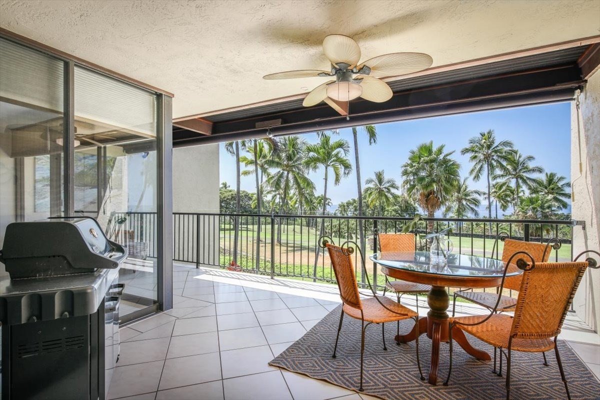 Large west facing lanais, allow for barbeques after days at the beach, or watching the Kona Country Club golfers play by as you relax with your book.