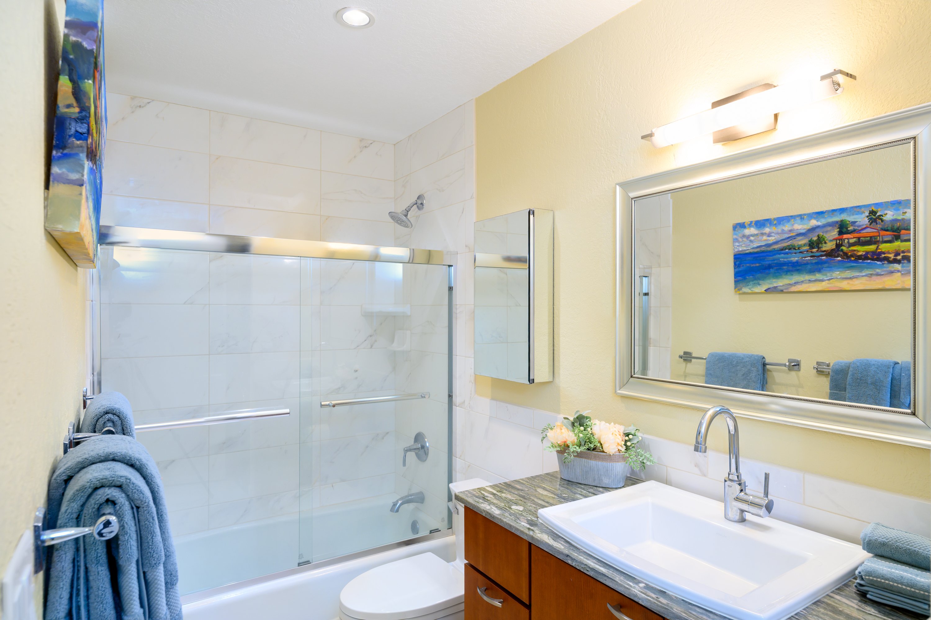 SPECTACULAR OCEAN AND SUNSET VIEWS! Located in the heart of Keauhou, this completely remodeled top floor, 2 Bedroom with loft, 2 1/2 Bath Country Club Villa has it all! Best location in the complex! Great panoramic ocean and sunset views, plus expansive golf course views! Completely updated, and in great condition. The home has an almost-new kitchen with soft close wood cabinets, granite countertops, and new stainless steel appliances. Updated ceramic tile flooring has been installed throughout. Six ceiling fans have been installed, and the high ceilings and an open floor plan allow for plenty of cool breezes and natural lighting. Stacked washer and dryer. The assigned parking space is directly in front of the unit on the first row. Country Club Villas amenities are second to none, with three pools and hot tubs, as well as tennis and pickleball courts. Country Club Villas also features an on-site manager and well-manicured landscaping. Golf is right next door at Kona Country Club. Close to the beaches at Kahaluu and Magic Sands as well as water sports at Keauhou Bay. Easy access to Kealakekua, Honaunau and Captain Cook via the Alii Bypass Road. Shopping, lots of great restaurants, and the movies are within walking distance at Keauhou Shopping Center. Features include: Loft area has been expanded to add additional living area and half bath Modern kitchen cabinets, fixtures, granite countertops and appliances Six ceiling fans allow for good air movement Raised ceiling pop-outs for fans Air conditioning in primary bedroom Recessed can, track and soffit lighting Custom blinds throughout Motorized lanai sunshades Tile in kitchen, living room and lanai Ceramic tile throughout with stranded bamboo in loft Bathrooms fully remodeled with new granite countertops Half-bath in third floor loft bedroom/office area Beautifully furnished Eligible for STVR permit