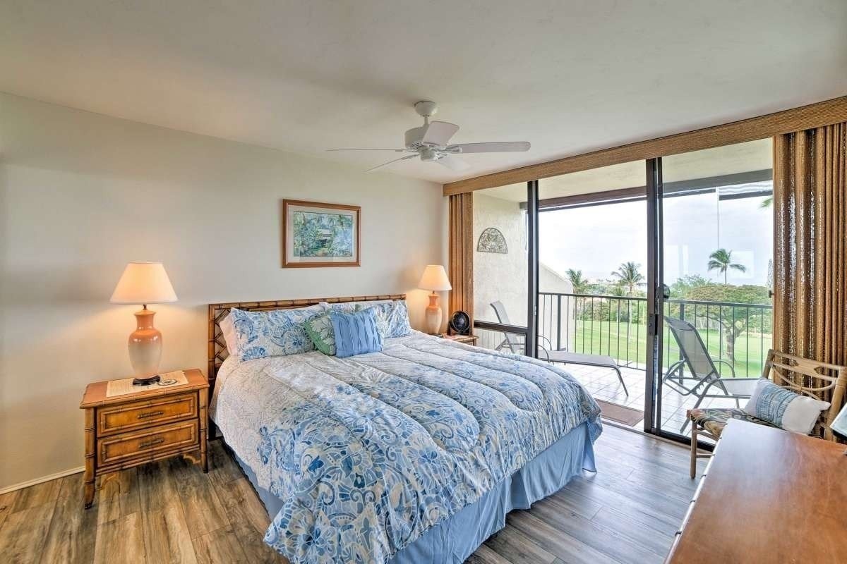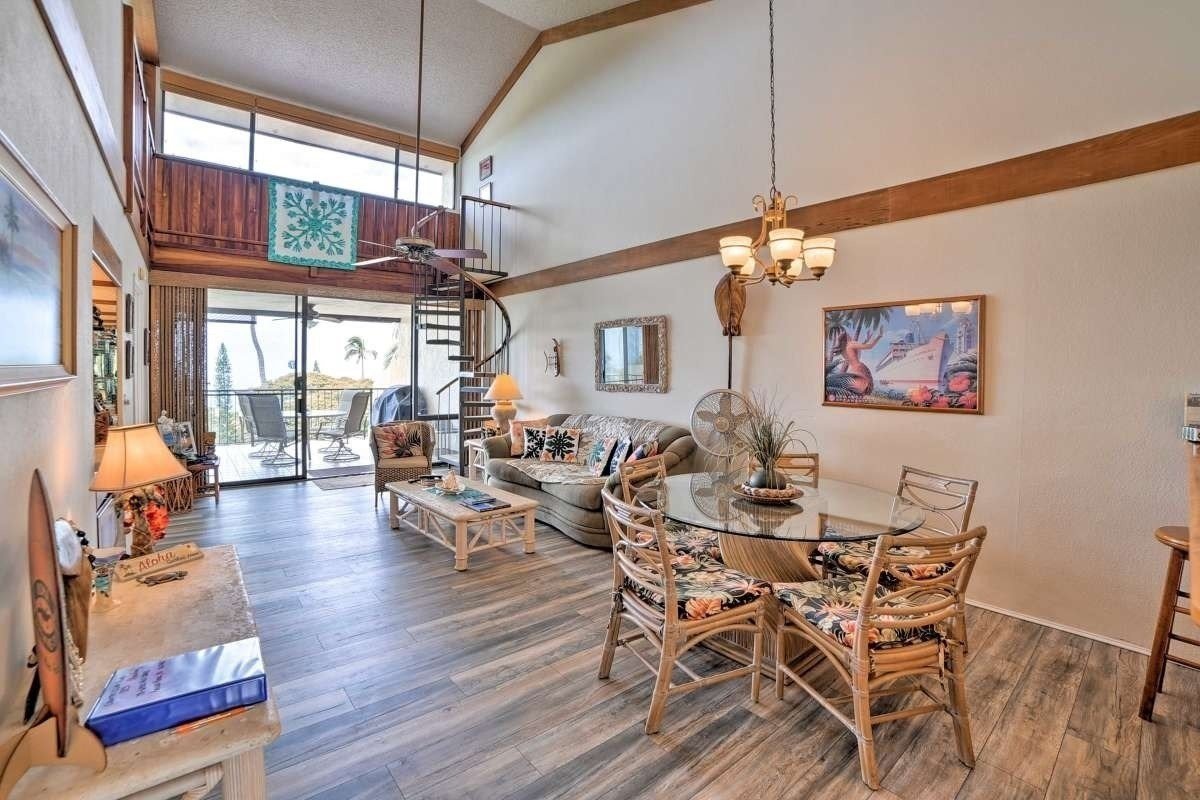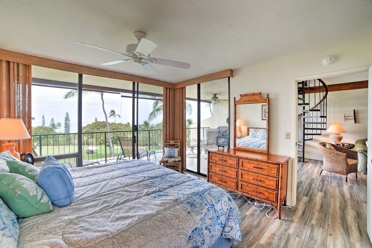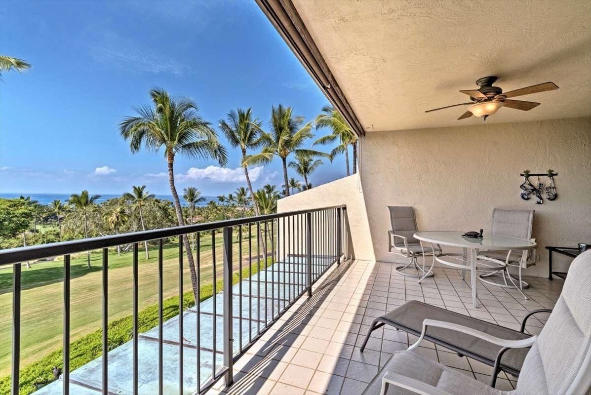 Country Club Villas highly sought after Condo with 2 Bedrooms and a loft. With one of the best locations in the Villas and featuring a beautiful ocean, bay and sunset views from the huge lanai overlooking the 10th green & 18th fairway of the Kona Country Club golf course. The lanai comes with less than year old BBQ. The unit has new floors, new water heater and a new washer and dryer. The loft is set up as bedroom maximizing the space and the amazing upper level ocean views. Although it’s on the 3rd and top floor, only one flight of stairs is required to access the private walkway to the front door. Fully furnished as a second home it is currently used as a vacation rental. Offered fully furnished per inventory list.