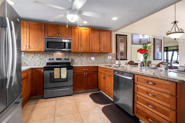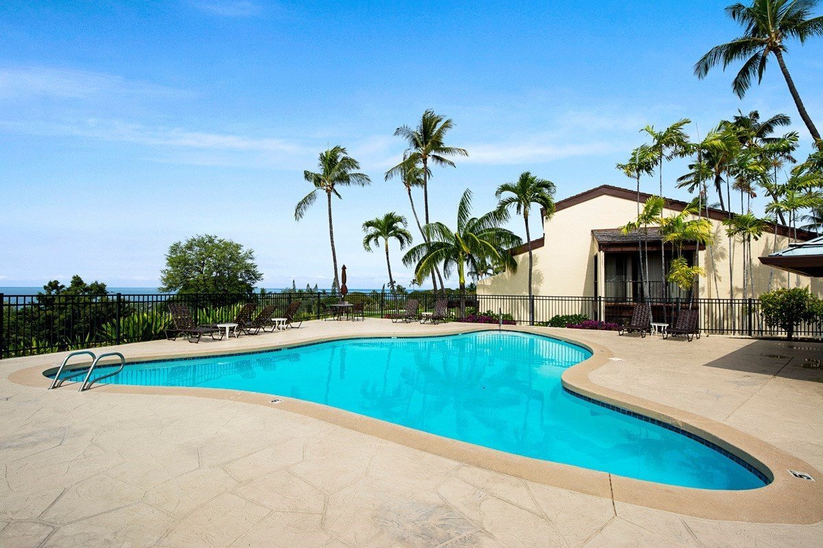 Wonderful top floor unit in Country Club Villas. The large covered tiled lanai where you can enjoy ocean and sunset views and watch the golfers. Fully furnished as a second home. Located along the Kona Country Club golf course, the Country Club Villas amenities include 3 swimming pools with spa, two tennis courts, lush tropical landscaping, owners exterior storage area. Popular Keauhou Resort offers shopping, dining and services, and fishing, boating and water activities are available at nearby Keauhou Bay. - Updated unit - Tropical furnishing (sold turnkey) - Assigned parking space easily accessible near the unit - 3 pools for 116 units, the bast ratios in Kona of units and pool - BBQ grills allowed on lanai Monthly maintenance fee includes: basic cable, water, trash collection, sewer, common area landscaping, maintenance of building exterior, a master insurance policy on the complex, pools/spa/tennis courts with ocean views and the services of a site manager. No pets allowed. Vacation rentals allowed with a 7-day minimum rental