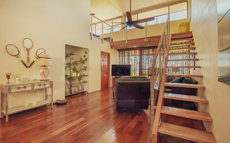 Notable features of Unit 338 include:- * Acacia hardwood flooring in the living room and bedrooms, while the kitchen, bathrooms and lanai are tiled. * Solid granite kitchen counters and vanities. * Knotty alder cabinets. * Near new stainless steel kitchen appliances. * New Douglas fir staircase with stainless steel marine grade railings accessing the loft. The loft has new bamboo flooring. * 251 sq ft of covered lanai perfect for entertaining and relaxation.