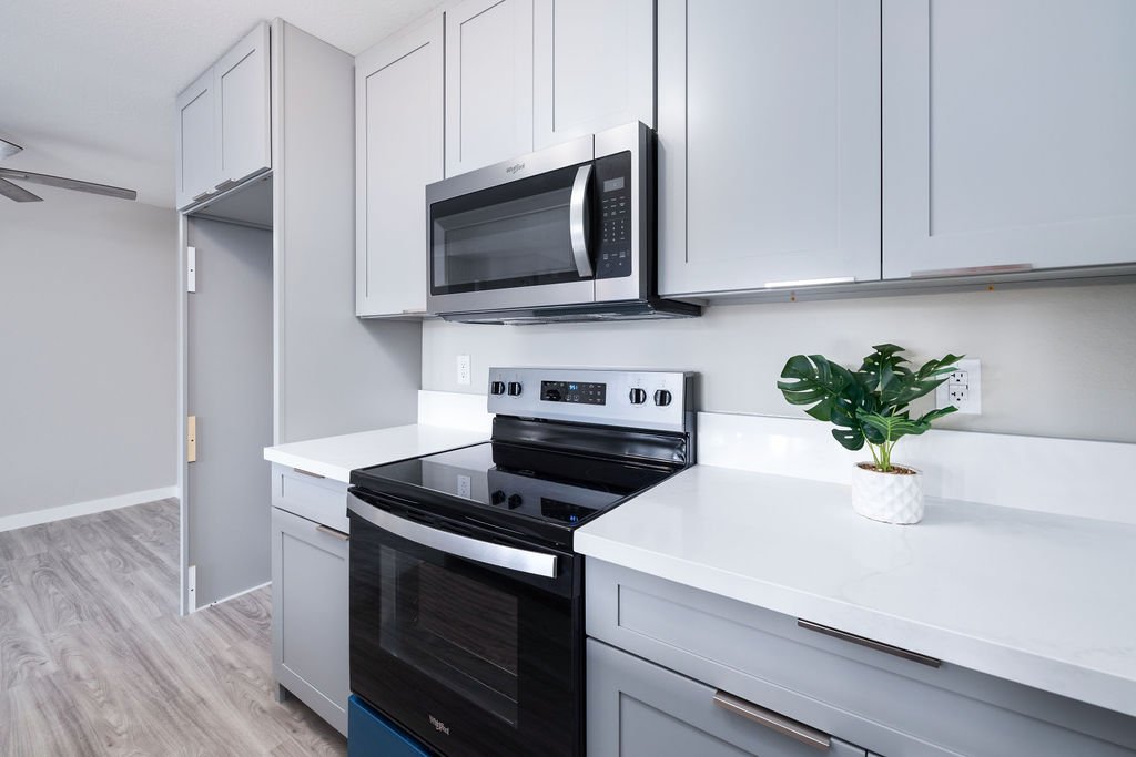 MODERN COMFORT and STYLE Recent renovations include: • Fresh interior • New luxury vinyl plank flooring and baseboards throughout • New interior light fixtures • New kitchen & bathroom all wood cabinetry and quartz countertops • New tiled showers, tub, toilets, and sinks • New stainless-steel kitchen appliances (range/oven, dishwasher, microwave, garbage disposal) • New ceiling fans • New interior and exterior doors and frames • New switches and electrical outlets throughout.