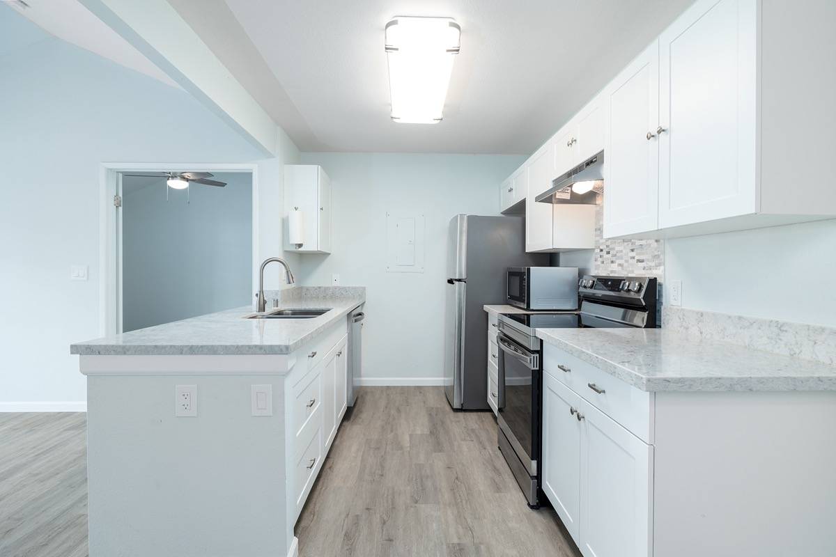Newly fully remodeled second-floor unit. Vaulted 10" ceilings. New kitchen cabinets, granite countertops, and new stainless steel appliances. New flooring throughout. Both bathrooms were fully remodeled as well! Professional tile job. New water heater. Vacant and MOVE IN READY! This unit will sell fast...do not wait!