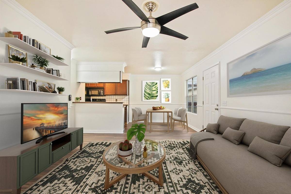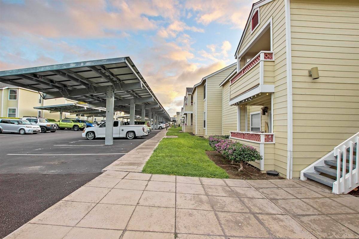 Welcome to Fairway Terrace in Waikoloa Village. This gated complex has amenities which include a fitness center, swimming pool, hot tub, clubhouse, a BBQ area, and designated car wash stalls. New covered parking was created by installing Photo Voltaic panels to assist with lowering electricity costs. This 2 bed/2 bath unit has new vinyl plank flooring and is located on the second floor of building C, directly across the Rec Center. Enjoy the low maintenance fee covering water, trash and sewer costs.Fairway Terrace is nestled amidst a Robert Trent Jones Jr. golf course and is just around the corner of the new Waikoloa Plaza with lots of shops and restaurants. This unit does not currently have an STVR permit, but short-term rentals are allowed with a 6 day minimum. Please check with the county in regards to permitting or any STVR questions.This unit would make a great starter home or vacation rental.