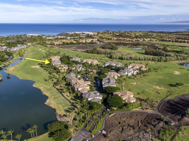 Special features: - A VALUABLE RARITY! Deeded Garage AND Deeded Parking Stall. Park in the garage and allow renters to use the shaded open stall. - Short-Term Vacation Rental registration freely transferrable to Buyer. - Imagine many happy occasions in the inviting great room with 20 ft soaring ceilings. - Extra special lanai views overlooking Lakes Course Fairway #4, Kings’ Lake, Hualalai in the distance. - A BIG PLUS -- versatile loft space with a dash of ocean view! Set up now with twin beds and a cozy reading nook, making this virtually a 3 bedroom condo! Also could be an office, game room, craft room. - Granite countertops, large pantry, laundry. - No other units above.