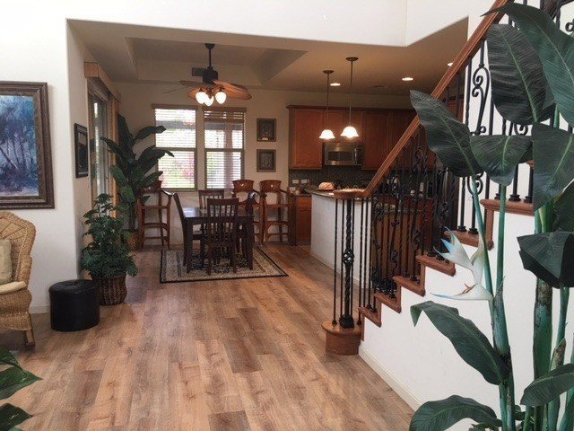 New flooring in the living room and dining room! Durable vinyl flooring has just been added to this great townhome in Mauna Lani. Are you looking for a unit that operates like a well oiled rental machine? Welcome to Fairways at Mauna Lani #1201! This unit grossed over $71,000 in 2015 and over $62,000 in 2016! Gross Revenue for 2017 thru 11/11/17 is over $65,000. Pre=paid bookings from February 1st to July 31st 2018 are almost $30,000! This unit is a favorite of vacation renters in the beautiful Fairways at Mauna Lani resort. Whether your guests are drawn to the resort style pool, the air conditioned exercise rooms, the access to the private beach Club at Maka'iwa Bay with its world class snorkeling, walking distance to the interesting shops and gourmet restaurants of Mauna Lani or the beautiful wide roads, perfect for bike riding, this established unit is managed by the owner!!! Thinking of managing the unit yourself with an on island contact and cleaning team? Seller thinks his current cleaning team are open to staying on with the new owner. Handyman is open to being the on-island contact. The unit comes fully furnished and ready to go with upscale finishes like granite counters and backsplash in the kitchen, and Whirlpool/Jacuzzi in master bath. This unit is ideal for someone looking to purchase a resort home that they can enjoy occasionally but are really interested in the rental income. Seller says it has been great to manage the unit himself all these years and he loves the rental revenue but he is ready to retire so it is perfect timing for a new buyer looking for a great opportunity.