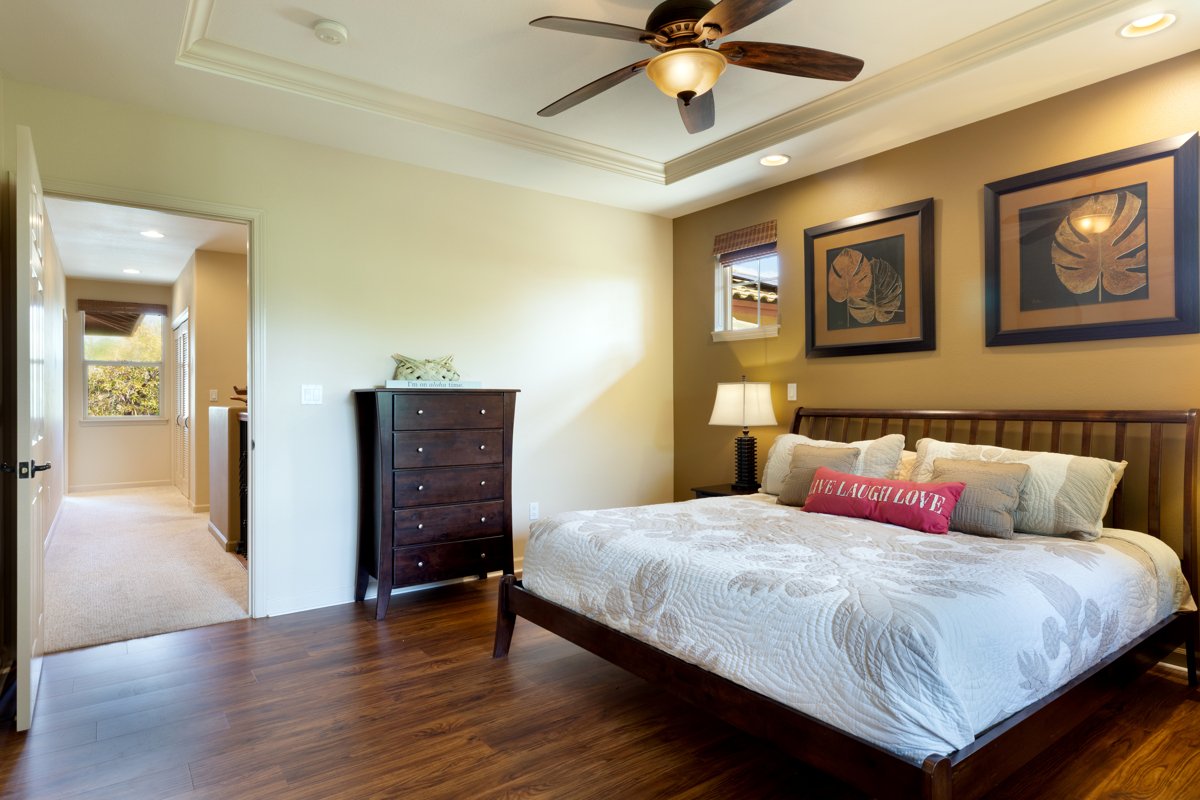 Upstairs, the primary suite offers both comfort and functionality, featuring a versatile den—ideal for a home office or additional sleeping space. The ensuite bathroom provides a spa-like experience with a jacuzzi tub, walk-in shower, and double vanity. A private lanai adds to the charm, offering a secluded space to unwind.