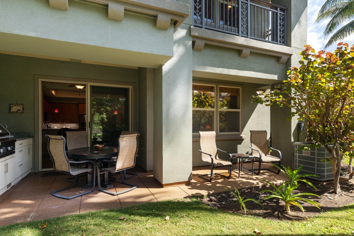 Step onto the expansive lanai, where a built-in grill station invites al fresco dining and lounging amidst the peaceful surroundings.