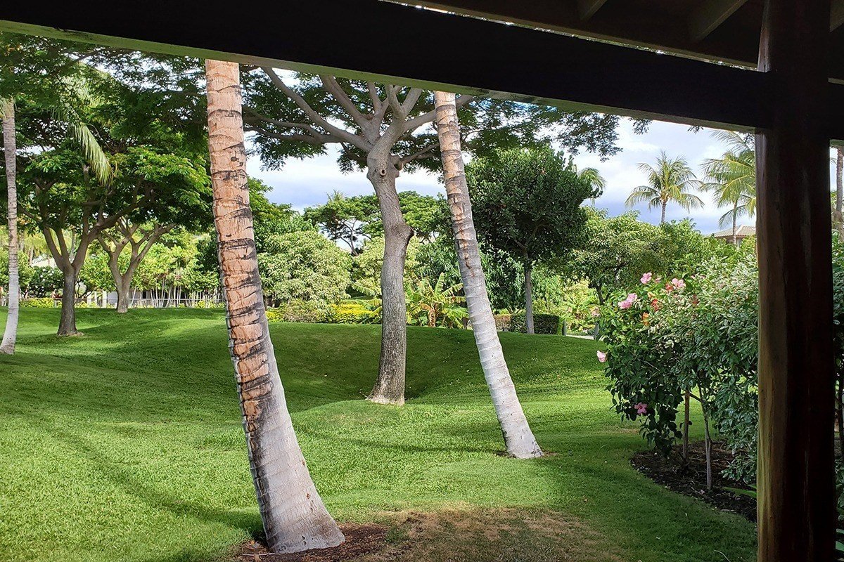 The gated community of the Fairways on Mauna Lani Resort have the 4th & 12th fairways of the North Course along three of its sides, interspersed with some lava rock areas that separate the holes.