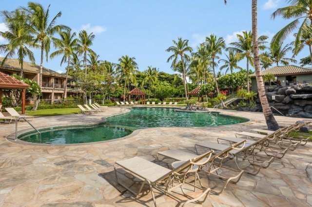 Amenities include a huge swimming pool with a lava rock waterfall and children's wading pool, a spa, and a fitness room. Ownership at The Fairways at Mauna Lani includes membership to the prestigious Mauna Lani's Advantage Program which provides access to the private Beach Club, Napua Restaurant, shopping and spa discounts, the Tennis Gardens, and owner discounts for the two world class renown Mauna Lani Golf Courses.