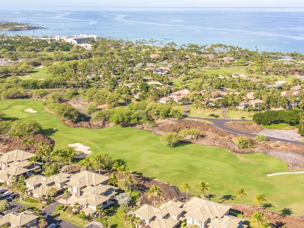 The gated community of the Fairways on Mauna Lani Resort have the 4th & 12th fairways of the North Course along three of its sides, interspersed with some lava rock areas that separate the holes.