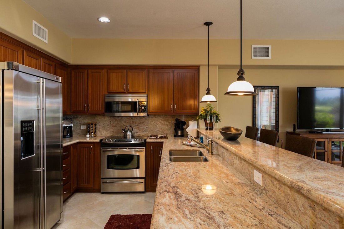 Welcome to the luxurious Golf Villas at Mauna Lani resort, a highly successful vacation rental, where paradise meets peaceful Hawaii life. This stunning 3 bedroom, 3 bathroom condominium on the highly sought-after Kohala coast, offers stunning views of the Kohala Mountains, Mauna Kea, and Mauna Loa, exclusive access to Mauna Lani Beach club, and an exclusive private gated and secure community. As you enter the property, you will immediately feel at ease in this relaxing, welcoming, and very peaceful unit. The open floor plan features soaring ceilings, natural light, and tasteful furnishings that perfectly complement the island setting. The spacious living area seamlessly flows into the well-appointed kitchen, which boasts high-end appliances, granite countertops, and ample storage space. Enjoy your morning coffee or evening cocktails on the large lanai while soaking in the panoramic mountain views. The master suite is a true retreat, complete with a luxurious king-sized bed, private lanai, and an en-suite bathroom that includes a double vanity, soaking tub, and separate walk-in shower. The two additional bedrooms offer plenty of space for family and guests, and both come with their own bathrooms. This exquisite unit comes furnished, adding to the convenience of moving in and making it your own immediately. Residents of the Golf Villas at Mauna Lani enjoy access to world-class amenities. Take a dip in the community pool or unwind in the hot tub after a long day of golfing at the two world-class golf courses at the Mauna Lani resort or exploring the nearby beaches. The Mauna Lani Beach club is just a short walk away, where you can lounge on the sand, paddle board, dive, or take advantage of the excellent snorkeling opportunities. For those seeking even more activities, 49 Black Sands Beach is located just a short drive away, providing a unique black sand beach experience.