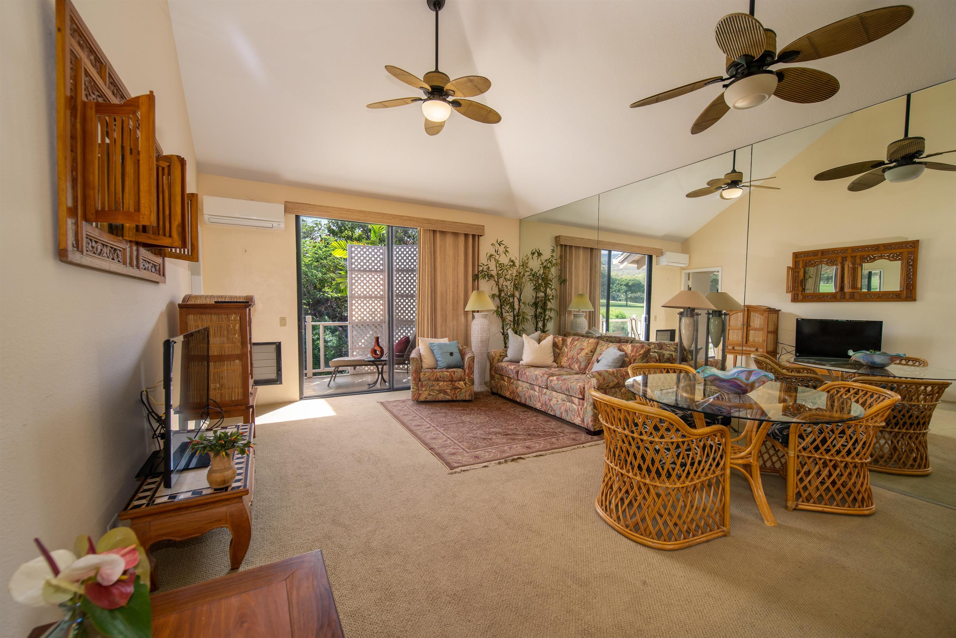 Quintessential Golf course location! A private corner villa overlooking the Wailea Blue course, with breathtaking views of Haleakala. This idyllic setting offers a relaxed lifestyle to enjoy on your spacious lanai. This beautiful villa features two spacious bedrooms, with full remodeled en-suite bathrooms. The second bedroom has a private entrance, with a lock off feature. High vaulted ceilings, creates an abundance of natural light and space. Upgrades include, a Split AC system, remodeled kitchen, featuring new cherrywood cabinetry, granite counters accented with a stunning onyx backsplash, with contrasting floor tile. The Grand Champions is located in the optimum Wailea location, walk to the Beach, play golf or enjoy on site tennis courts. World class dining and shopping are just minutes away. Sold furnished.