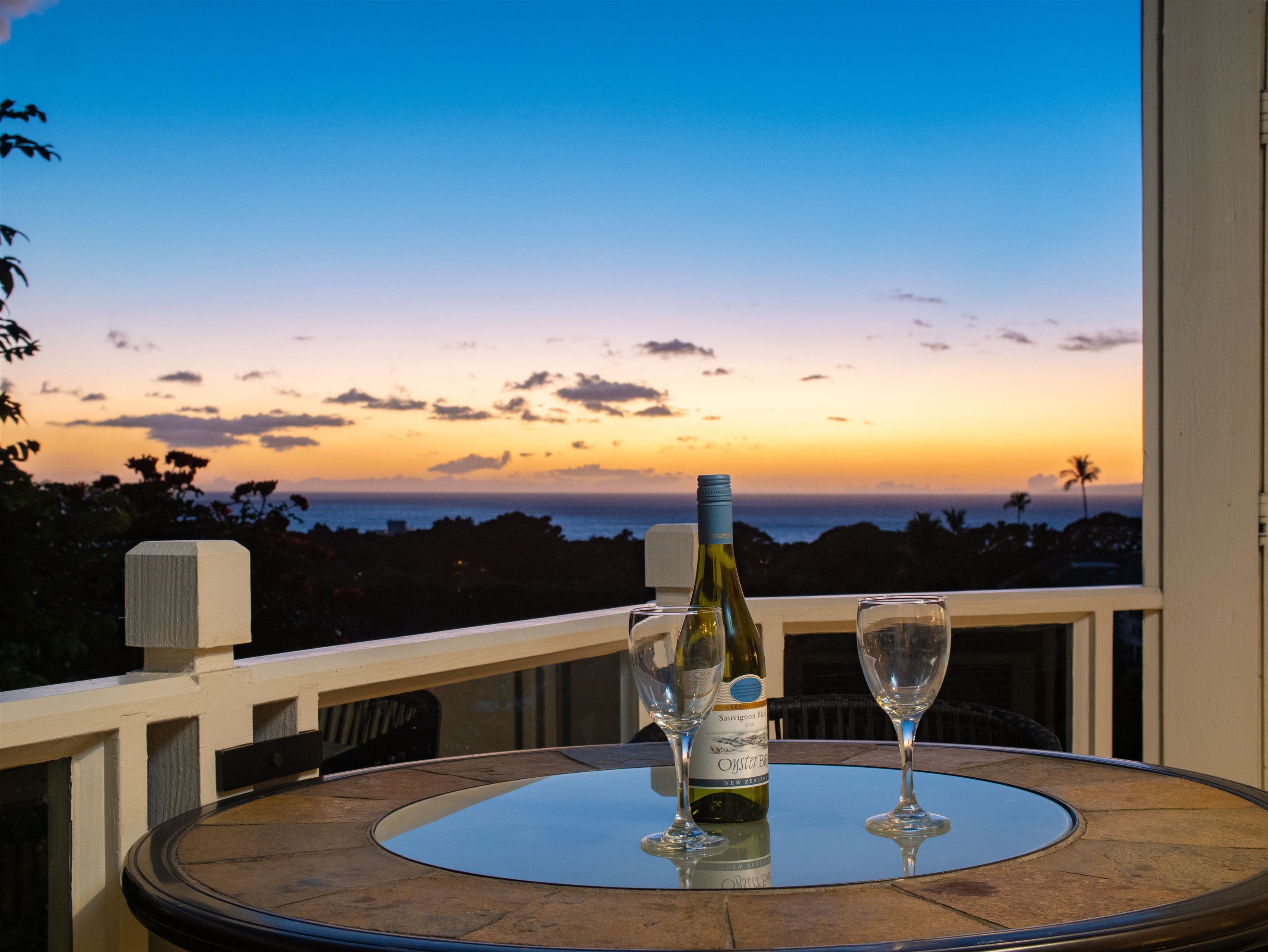 Grand Champions 52 has ocean views from the lanai and the master bedroom, plus, direct views of Maui’s dreamy winter-months sunsets — A Wailea vacation condo at it’s finest. Unit 52 at the Grand Champions Villas crowns an upper floor corner location, offering two extra windows in both of the bedrooms, as well as extra windows in both bathrooms. The top to bottom renovation features an abundance of travertine tile throughout. This includes the floors in the entry area, the kitchen, the lanai and the two bathrooms, but also the floor-to-ceiling tiled shower stalls with two shower towers, a bathtub and tempered glass walls. Exquisite designer-chosen tile inlays throughout, with beautiful backsplash tile work in the kitchen and bathrooms. Matching granite counter tops with under-mounted sinks and quality fixtures. Vaulted ceilings in the living and dining area create an extremely spacious feeling. The cream-colored berber carpet in the bedrooms and the living area has a tropical wave pattern. Solid wooden doors with framing and wooden baseboards were added to all rooms. The renovation included all new cabinetry with superior hardware. Most of the furnishings are Tommy Bahama designer quality. The living room has a sofa-bed. The lanai sliding doors were installed reversed for better access. The full-size LG washer and dryer are brand new, other appliances were also replaced more recently. Grand Champions 52 shows pride of ownership and has not been used as a vacation rental. There is no rental history, but interested parties can see projected income opportunities in the Associated Documents for this listing. Aside from smaller personal items, nearly everything shown in the video and the photos are part of this sale. The inventory list includes a fully equipped kitchen, plus sufficient towels and linen sets for both of the suites. This Wailea condo comes turnkey and is ready for new owners and their renters.