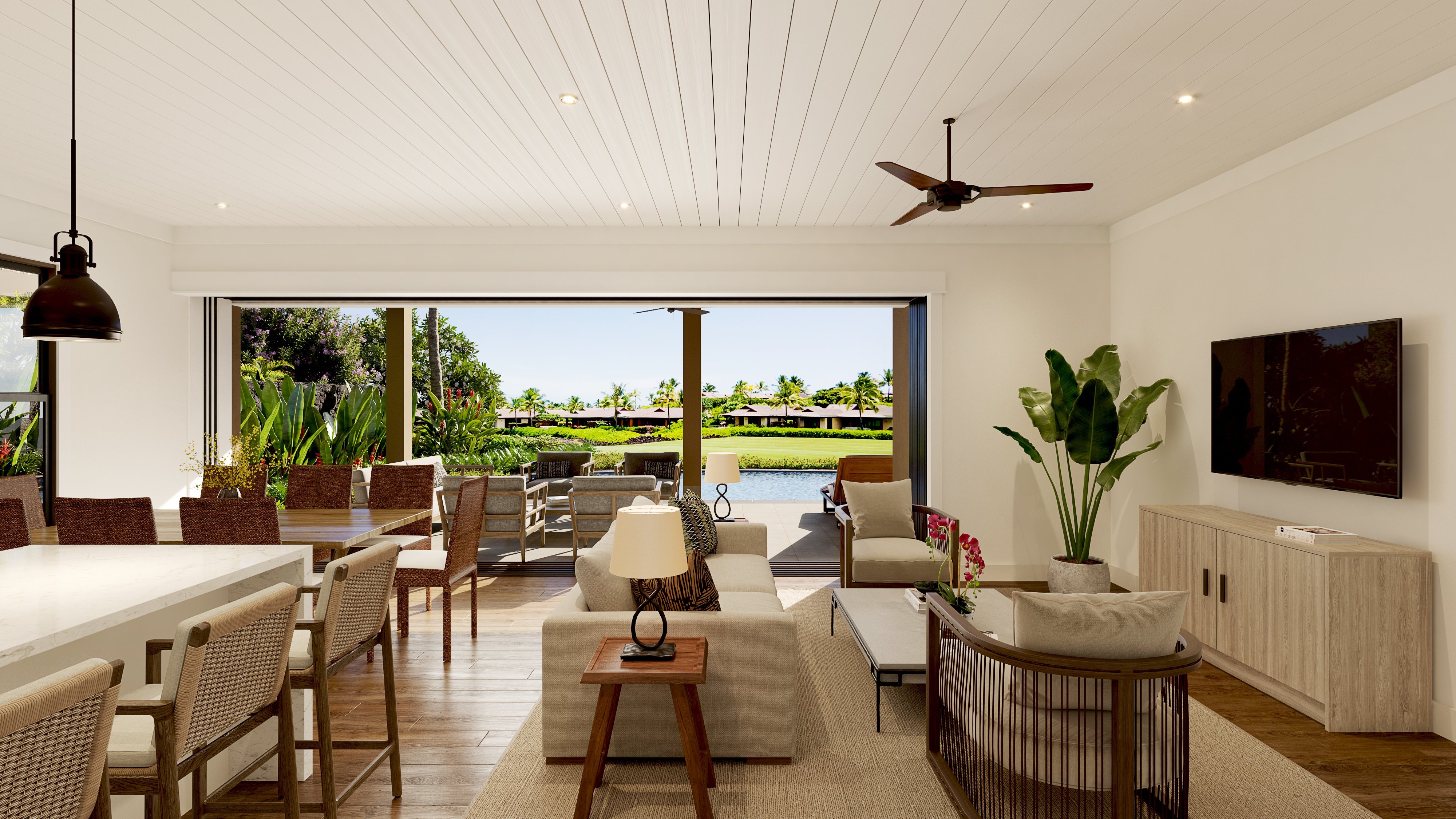 Nestled within the serene Kohanaiki community, the Hinahina Residences offer an unparalleled level of seclusion. Flanked by the sprawling 1,160-acre Kaloko-Honokohau National Park on one side and boasting breathtaking ocean vistas, golf course panoramas, and spectacular sunsets on the other, this location is truly exceptional.