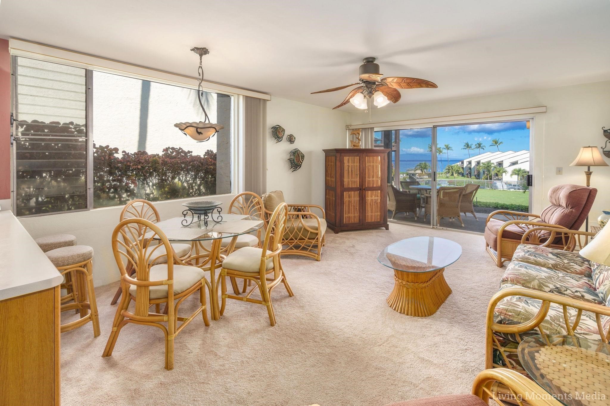 Great Ocean Views from the lanai and inside this ground floor, 1 bedroom, 1 bathroom condo in one of south Maui's most desirable complexes. This end unit, with a large extra side window, brings in a lot of light to the dining room and living area. Very comfortable easy chairs, tropical print on rattan couch. Art work is very Hawaiian. King bed in bedroom with queen hide-a-bed in living room. Flat screen TVs in living room and bedroom. This well equipped condo sits in the middle of the complex and is within close proximity to some of south Maui's finest restaurants, beaches and resort golf courses. It has a full Kitchen, Refrigerator, Dishwasher, Coffee Maker, Microwave, Toaster, Cookware, Ceiling Fans, Linens, Washer & Dryer, Ironing Board, & High Speed Internet. It is turn key for the new owner, just bring your suitcase. Make this your Maui Paradise Home today. Call your favorite REALTOR to schedule a private showing. This unit is a very successful vacation rental. Remarks above are true. Buyer must agree to honor existing rental agreements for 152 in place at time of accepted offer.