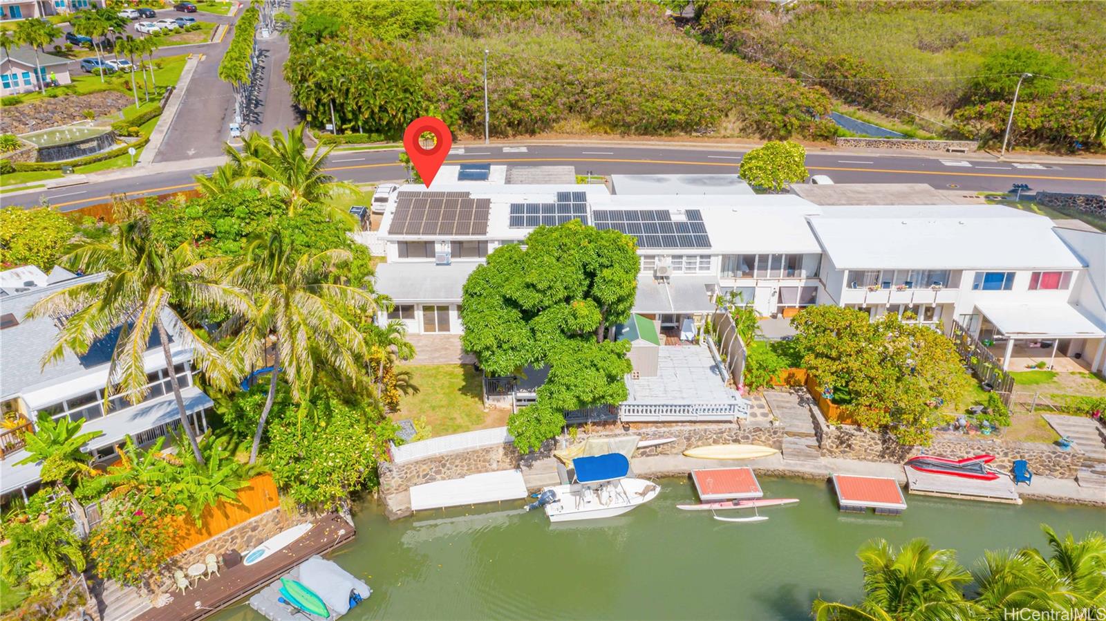 BACK ON THE MARKET!!! Rarely available end unit townhouse in Hale Makani Kai underwent a large scale remodel in 2016 that greatly expanded the interior square footage. Luxury vinyl flooring throughout the downstairs, all new carpet recently installed upstairs and the unit has been painted inside and out. The old galley kitchen was opened up to allow for a spacious, open concept design. New kitchen features Quartz countertops, new cabinetry and stainless steel appliances. A lanai was installed with porcelain tile flooring which leads out to a nice, landscaped yard. There is a private dock where you can park your boat, kayak, canoe or stand up paddle board! Unit also boasts a split a/c system that is about a year old. The den adjacent to the kitchen can be used as a study or guest room. 21 owned solar panels will lower your electricty bill while also providing enough power for the Level 2 Electric Vehicle charger that is installed in the garage. Also featues a solar water heater and low HOA fees. This is one of the best offerings of townhouse marina life in Hawaii Kai making for a great value for the discriminating home buyer. A must see unit!! Open House: 02-26, 3 -5pm.