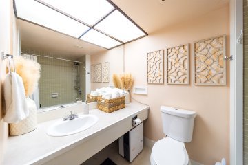 Only 2 bedroom unit (11/21) that was recently remodeled in a great Oceanside building. Walk to beach parks with great snorkeling, uncrowded streets and swim in Lalakea ponds fronting the building. This is a very clean 2 bedroom unit with fresh paint and flooring. Its a a well managed building with a beautiful salt water filtered pool and covered parking. This unit is not a vacation rental and has not been one. The unit was renovated last year and upgrades from the new waterproof flooring in the living room to the quartz kitchen counter tops were added. Year old Dishwasher and full sized front loading Washer/Dryer. Range and Fridge replaced in the last 4 years. Completely ready to go for a new owner! 2nd bedroom off the Living room is separated by privacy Shoji doors. 2 full bathrooms for convenience and a large practical lanai. Must see! Fees include all utilities, maintenance on the building and insurance on the building. No future assessments known. Gas is source of Range and Dryer. Price per square foot on maintenance fees is lower than most other buildings in Hilo.