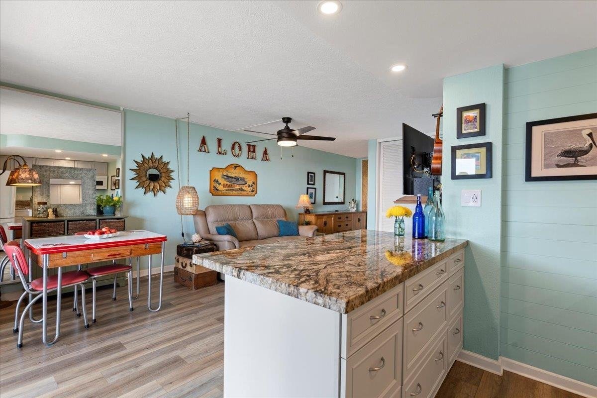 STOP!! Look NO further! This 1 Bdrm/1 Bath has it all! Relax on your LARGE Lanai and enjoy the FULL Ocean views with breaching whales and sunsets. Sip your morning coffee to the enchanting views of both Molokai and Lanai and the pods of Spinner Dolphins.. Fantastic option as BOTH a primary residence or investment property, make this your NEW home. Comes furnished and TURNKEY! Remodeled in November 2021 with New kitchen & bath cabinets, granite countertops, undercabinet lighting, all lighting on dimmers, new fixtures, toilet, disposal, appliances, custom opaque glass closet doors, high powered ceiling fans in all rooms & lanai, luxury vinyl flooring, and paint throughout to tie it all together. SOOO much extra storage and closet space. Enjoy both the Tanning Deck or direct Ocean access for Great snorkeling and turtles galore! Lounge by the Large swimming pool, or enjoy shuffleboard, BBQ grills, or a small deck and meditation bench on north makai corner. You will find shopping, restaurants, fitness centers various services nearby. HOA includes electricity, garbage, recycling, water, sewer, cable, & internet. On-site laundry, Kayak, surfboard and bike storage. Don't wait! Call your favorite Realtor today for a private showing!