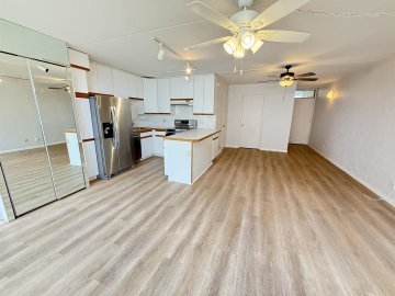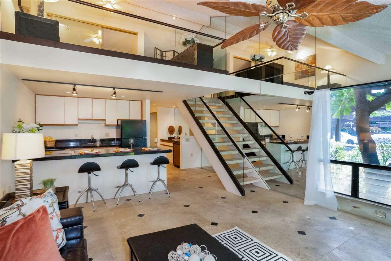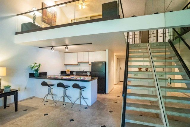 Oversized studio at Haleakala Gardens with a permitted loft, high ceilings and lots of storage! This unit is upgraded throughout with Travertine floors, granite countertops, built in bar and full size washer & dryer. The studio units at Haleakala Gardens provide lots of privacy with no neighbors above or below you. Permitted loft storage area.This complex is a residential complex with no vacation rentals allowed. One parking stall directly in front of unit and pets are allowed. Unit comes partially furnished.