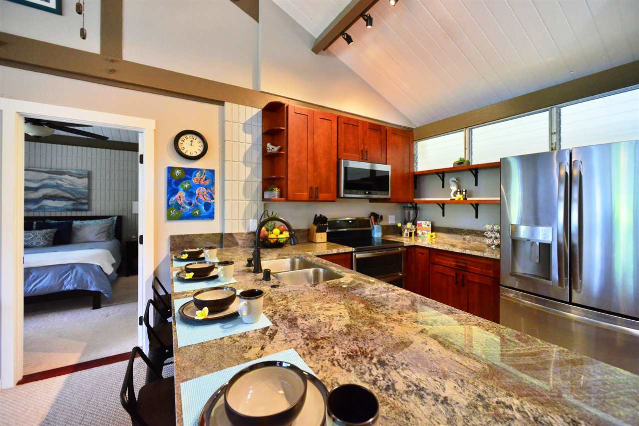 Beautiful and tasteful remodel. Step into this condo and you feel right at home. Whether it's your permanent residence or your dream vacation. Most definitely pride of ownership! All high end stainless steel appliances, granite counter tops and new furniture. Top floor with vaulted ceilings gives the unit a larger feel + it's located on the quiet side of the complex. The master bedroom has its private bathroom and it's own access to the lanai. Just across the street is popular Kamaole Beach Park III and a block away are shops and restaurants. New Owner must honor all future bookings. Please view the 3D Tour!