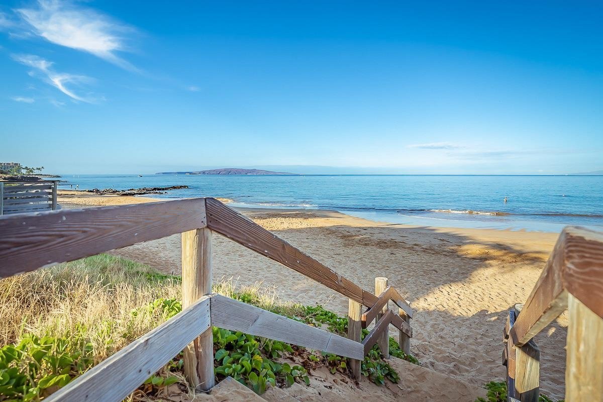 Nestled in Kihei, the charming condominium complex of Haleakala Shores may not be beachfront, but it’s just across the road from the famously golden sands of Kamaole Beach Park III.