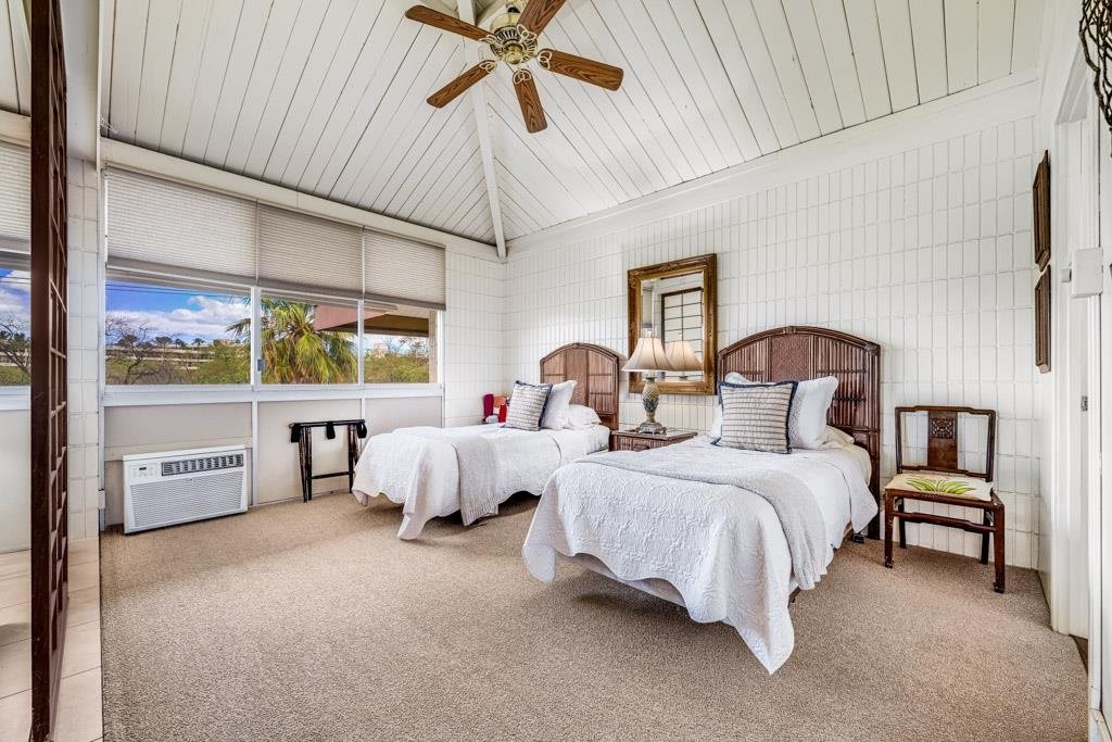 Haleakala Shores A409: Your Maui Beach Escape Awaits. Discover the perfect opportunity to own a highly sought-after TOP FLOOR unit at Haleakala Shores, ideally positioned directly across from the world-famous golden sands of Kamaole Beach Park III, renowned for excellent snorkeling, swimming with sea turtles, and spectacular sunsets. This beautifully updated and spacious 2-bedroom, 2-bathroom condominium features VAULTED ceilings with an airy open-concept design, air conditioning, and COVERED PARKING to keep your vehicle cool. The primary suite offers a serene retreat with a queen bed, en-suite bathroom featuring a large walk-in tiled shower, and direct access to the private covered lanai where you can enjoy partial ocean views while catching the breezy trades. The generous guest suite includes two twin beds, its own full bathroom with walk-in shower. No detail is overlooked in this turn-key offering, including a fully equipped kitchen with modern appliances, new large capacity in-unit washer/dryer, new hot water tank, and storage for beach gear (plus additional surfboard/kayak storage near the pool). Residents enjoy resort-style amenities including a beautiful community pool, sun deck, covered lounge area, BBQ facilities with gas grills, and tropical garden grounds—all in South Kihei's most walkable location near popular restaurants, shopping, and just a short drive to world-class golf courses in Wailea and Makena. Whether you're seeking full-time island living, a second home, or a highly desirable vacation rental, Haleakala Shores A409 offers the ideal blend of convenient location, resort-style amenities, and spacious comfort.