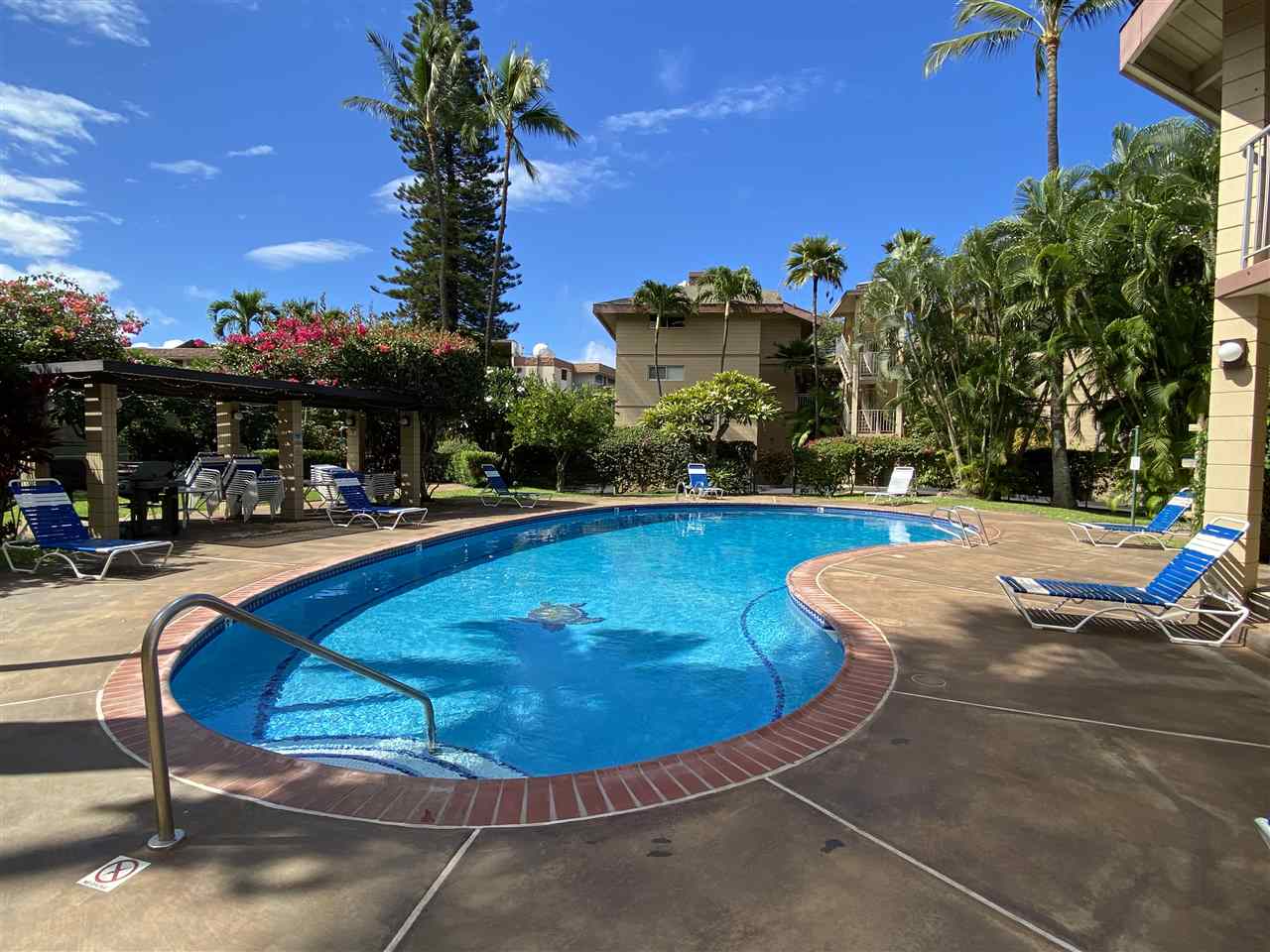 So close to the ocean...So close to the restaurants...So close to all the amazing things Maui has to offer. This penthouse 2 bedroom Haleakala Shores 4th floor unit features vaulted ceilings, a beautiful renovation with updated kitchen, Hardwood laminate and tile floors updated baths that feature a handicap accessible roll in shower and will be sold with the furnishings to make for a simple transition. This great property has a nice view with a peak of the ocean and west Maui views. Although it can be in a short term rental program, these owners have chosen to keep it predominantly for their own use. Haleakala shores is across the street from Kamaole beach Park III and also has a great private pool area and covered parking under the building.
