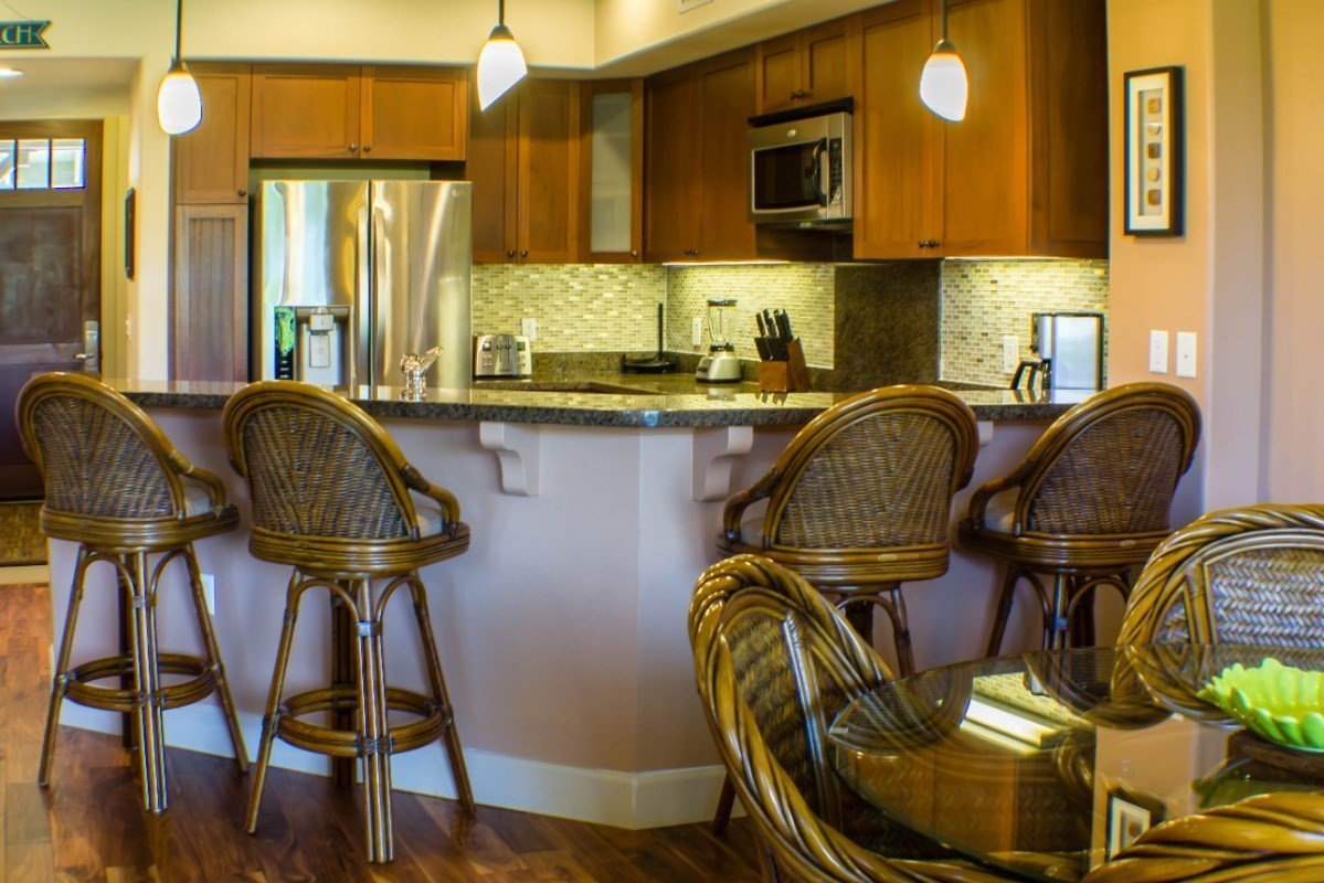 Note: Not all pictures show the current improvements. Updated pictures are coming soon. Hale Mermaid is a lovingly maintained 2-story, 3BR/3BA townhouse-style condo with a one-car garage and additional parking space. This very successful and highly rated vacation rental has a large gourmet kitchen with African mahogany cabinets, granite counter tops, glass back splash, and new stainless-steel appliances. The large living and dining area open up to one of two lanais. The master suite features another private lanai, walk-in closet, large bath with soaking tub, separate shower and double vanity. This property has been impeccably maintained & updated with top-of-the-line décor & furnishings including: • New refrigerator 2021 • New KitchenAid dishwasher 2019 • New LG front load washer and dryer 2018 • New Acacia hardwood floors on lower level 2017 • New high-end carpet for stairs and upper level bedrooms 2019 • New kitchen backsplash tile 2017 • New garage door opener and keypad 2018 • Most of the windows, all sliding glass doors & screens replaced between 2017 and 2019 • Crown Molding & painted wood-trimmed windows throughout • Built in cabinets in laundry room • Upgraded ceiling fan in master & new ceiling fan on lanai • Nest thermostat • New Trane air handler motor 2020 • Pottery Barn Rods and Custom drapes