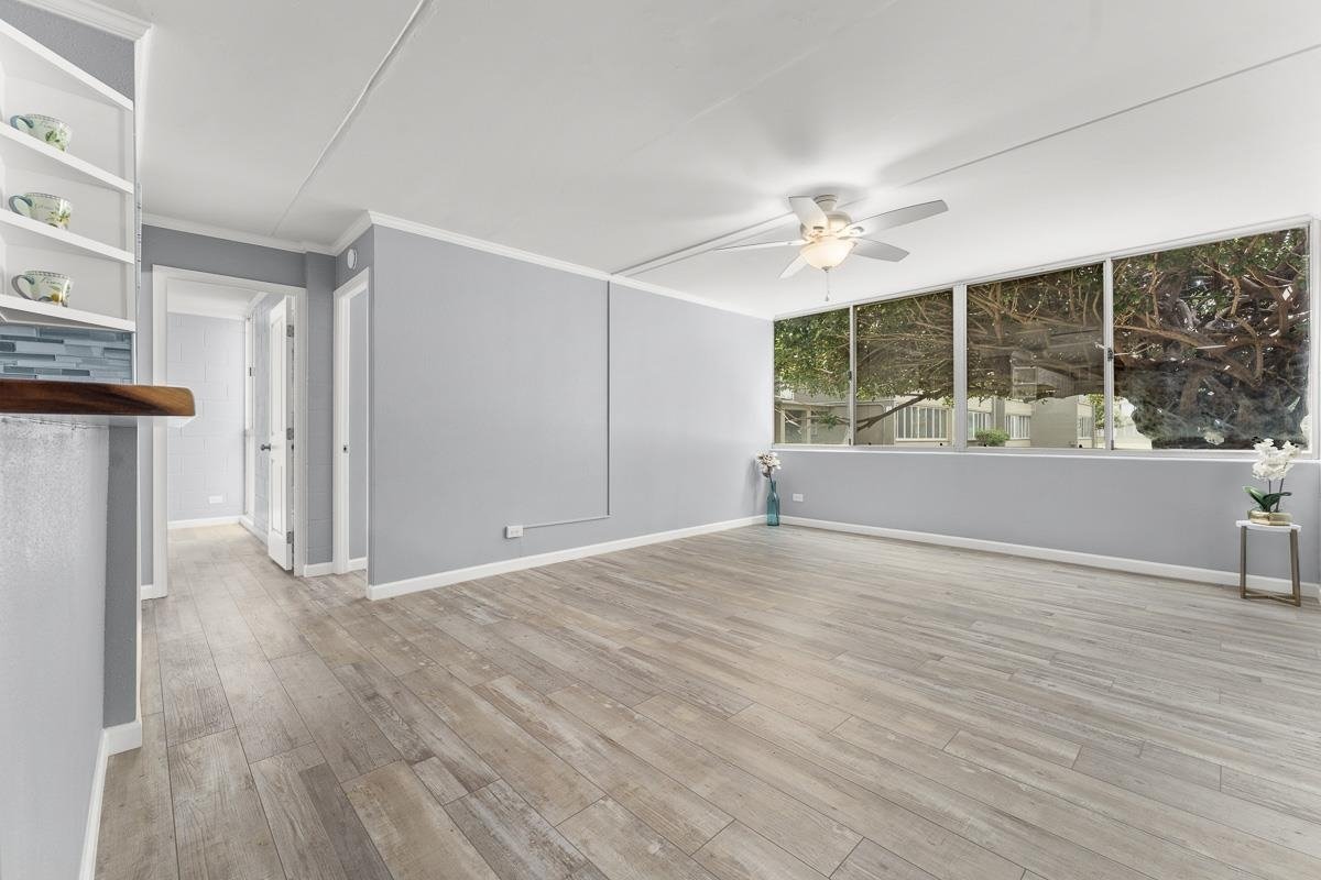 The 2 bedroom 1.5 bath unit has undergone a complete and luxurious renovation from top to bottom, featuring a modern and sophisticated design. You'll be impressed by the stunning Lifeproof vinyl plank flooring that runs throughout the space, as well as the crown molding that delicately kisses the freshly painted walls and ceiling. The unit is flooded with natural light thanks to the large vinyl windows, which beautifully accentuate every detail of the condo's upgrades. The butcher block bar countertops and white soft-close cabinets make cooking a breeze, while the all-new appliances make meal prep a joy. You can also relax in the spa-like experience of the tiled walk-in shower, which features smart technology including Bluetooth-enabled speakers, a bathroom vent, and night light. The complex has a playground, basketball court, and a private pool surrounded by colorful gardens and a tranquil koi pond. Plus, you're just moments away from the harbor and near some of the most popular local surf spots, as well as medical facilities, schools, and delicious restaurants. It's worth noting that this stunning unit is a ground floor corner unit within the complex with convenient access to your assigned parking stall just a stone's throw away. Enjoy the added privacy and quiet that comes with being tucked away in your own little corner of Harbor Lights.