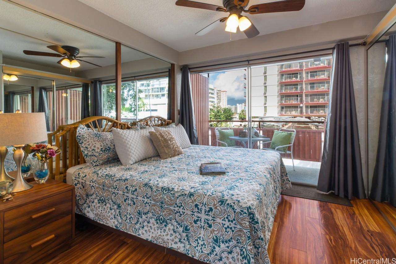 Location, location, location! Right in the heart of Waikiki, just steps to International Marketplace, Duke's Lane Eatery, tons of shopping, a blustering nightlife scene, and the world famous Waikiki beach! This large one bedroom one bathroom condo is a great 30+ rentals. New kitchen cabinets, counter tops, stainless steal appliances, tile and vinyl flooring, this unit is turn key and ready to go! Relax by the pool-side lounge surrounded by tropical landscaping or entertain guests at our outdoor grill. With a long lease expiring in 2036, and the building also has on-site laundry so that your guests don't have to do laundry when they go home! Please come see our little slice of paradise, the unit is vacated so call your Favorite Realtor and view it today!