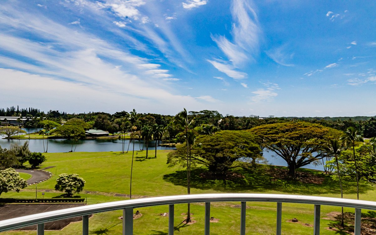 Views, views, views! This 8th floor unit at Hilo Lagoon Centre has exceptional views of the Wailoa park lagoons and the ocean beyond. Gaze at water views from each of the three balconies in Condo 804.