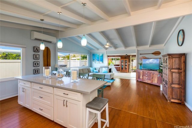 DON’T MISS THIS ONE!! Enter through the automatic gate to this fully and beautifully remodeled home by the owners as their forever home!! New open kitchen with huge island, bamboo and wood flooring, 4 split AC units covering all living space, 21 solar panels fully owned with net metering, security system, new Silicone Gaco Roof coating with a 50 year warranty, upgraded vinyl windows throughout, gorgeous bathrooms. Entertain in the large covered lanai with impeccable landscaping that includes a waterfall, lights on timers, banana’s, papaya’s, and avocado trees, and a huge outdoor play structure. Tons of storage, near a great school, and close to all the amenities of Kailua! Come see, come home!