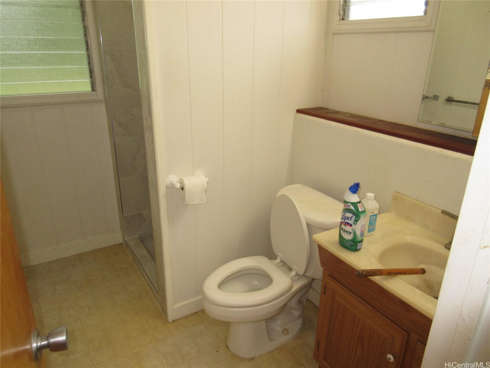 Mostly level lot with majestic Koolau views. Huge backyard with fruit trees. Wide street with partial off-site improvements and easy access to Kamehameha Hwy, Likelike Hwy, H-3 and Windward Mall. Kitchen and Hallway Bath original but Second Bath has a newer shower stall. Sold As Is.