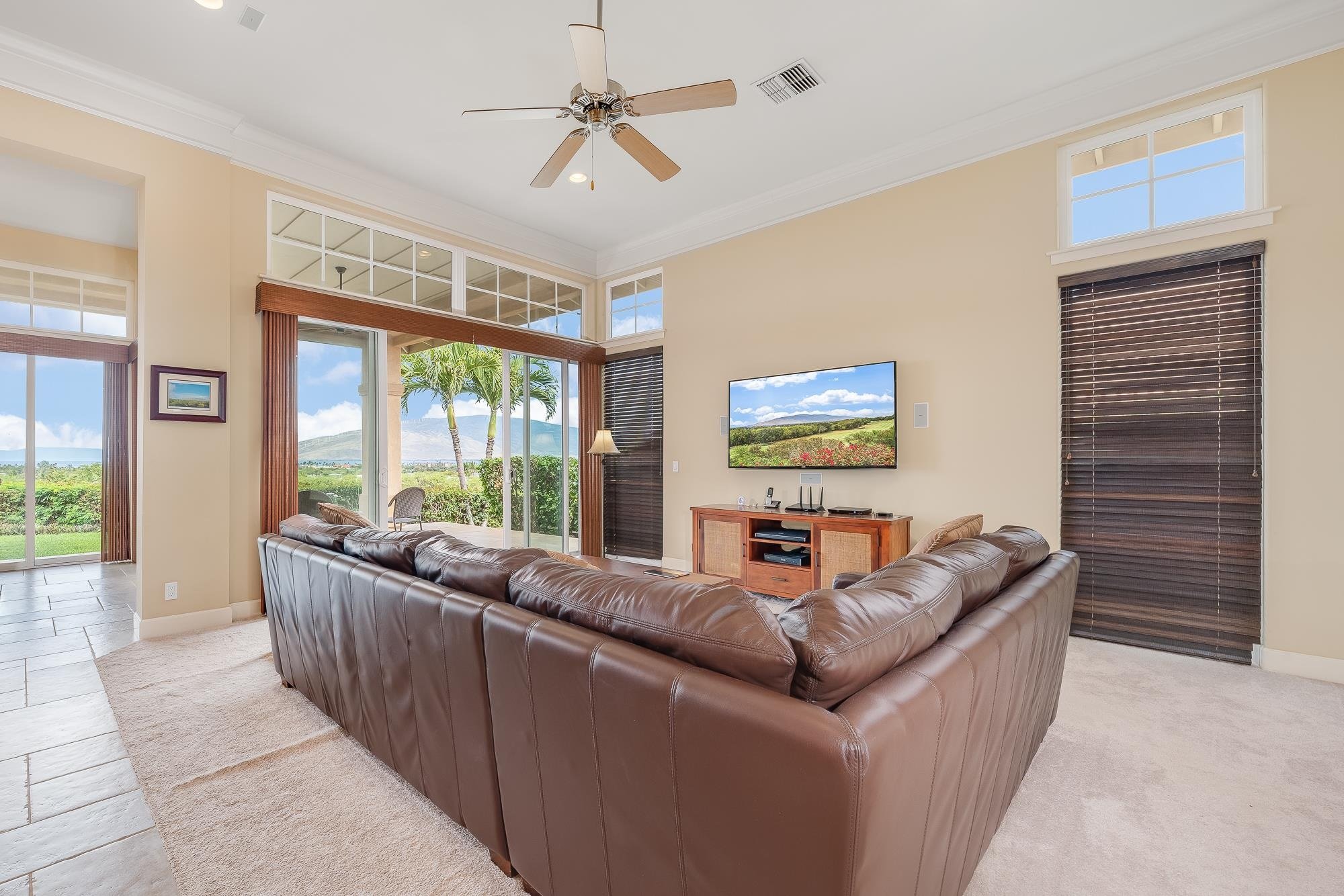 Home Sweet Home, the search is over as you are welcomed home to this lovely move-in ready luxury Hokulani Golf Villas Residence. This 3-bedroom + 2.5 bath with developer converted den for use as a fourth bedroom comes turn-key ready and furnished. This was one of the many of the $60K in developer upgrades!! The primary bedroom is conveniently located on the ground level with excellent ocean and sunset views. This residence is situated on the front row directly above the Maui Nui Golf Course 10th hole, offering panoramic ocean and sunset views that are enjoyed year-round from the spacious back lanai. Developer upgrades, including the Solarus custom designer series upgrades, beautiful African Mahogany finished self-closing cabinetry, top of the line appliances, audio/video and full security system. Directly located below the Hokulani Golf Villas club house, infinity edged pool and spa allows for incredibly easy access as well a nice community park to enjoy!! Conveniently located to amenities for golf, beach, ocean, shopping, dining and airport. Make your dream come true and give your favorite Realtor a call to make it happen!!