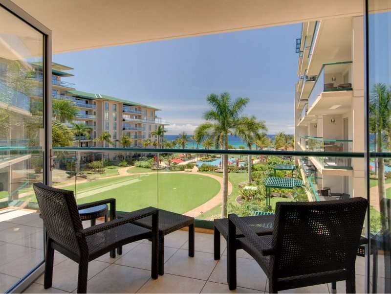 Rare offering for this unique location within the resort. Hokulani 341 is a gorgeous ocean view wind-protected interior corner condominium located on the 3rd floor. Offering beautiful views of the ocean and infinity pool with the island of Lanai and sunset views every night as your backdrop. This unique and rarely available model offers two sets of folding glass doors that open to a wrap-around lanai and provide the ultimate indoor/outdoor living experience at Honua Kai. One of the few interior models offering a cross-breeze through the unit with off-set folding doors that also provide a brighter interior than other units. The full kitchen has a large island that is perfect for entertaining and is equipped with Bosch appliances and finished with granite counter tops and tile back splash. The luxurious bathrooms offer continental baths. The property is in a vacation rental program and has excellent rental history. This is the only property of its kind currently on the market at Honua Kai. Located on the last stretch of beachfront in Kaanapali, Honua Kai is the newest whole ownership condominium resort to be built on Kaanapali Beach. Amenities include three spectacular pools, a boutique spa, fitness facility, underground and valet parking as well as Duke's Beach House restaurant.