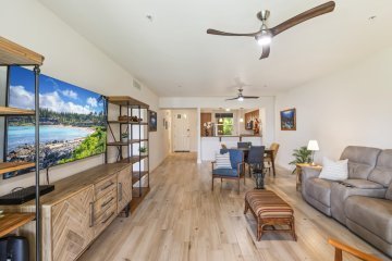 Welcome to unit 423, a seamless blend of contemporary elegance and island serenity. Situated in the sought-after Hokulani Tower, this fully furnished unit is designed for effortless living. Thoughtfully upgraded with premium Bosch appliances, a brand-new GE refrigerator, and granite countertops. Every detail has been selected for sophistication and functionality, including an in-unit brand new GE washer and dryer. Expansive bifold doors open to brand-new lanai chairs, offering a harmonious connection to the ocean views and inviting the beauty of Maui’s coastline into your home. From the rich laminate flooring to the modern furnishings, every inch of this residence exudes comfort and style. Plus convenience of proximity to the elevators yet removed enough for quiet tranquility. Beyond the unit, the Honua Kai beachfront resort offers an unparalleled lifestyle. Three resort pools and a state-of-the-art fitness center are all at your fingertips. Duke’s Beach House, renowned for its exceptional dining, is just minutes away. Whaler’s General Store in close proximity and barbecues on site provide all the conveniences of home. Whether you seek serenity or vibrant resort living, Unit 423 invites you to experience the best of both worlds. Your dream escape awaits. Listors are owners.
