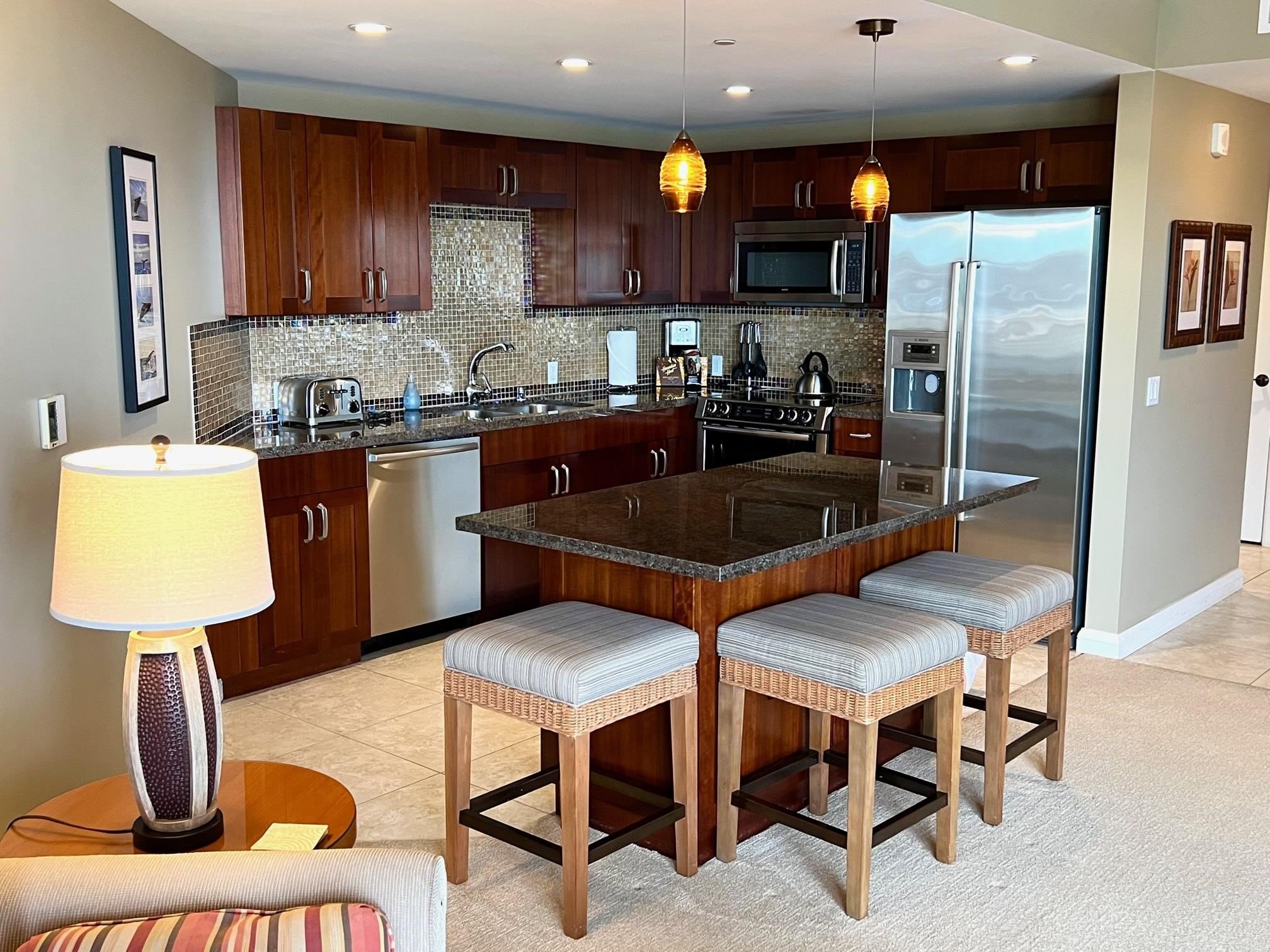 A rare opportunity to purchase an upper floor studio at the Honua Kai Resort and Spa. Hokulani 719 offers huge ocean and sunset views while overlooking the tiki torches situated around the Hokulani pool and Duke’s Beach House. This unit has always been owner managed, so it has always been well taken care of. Listor is the seller.