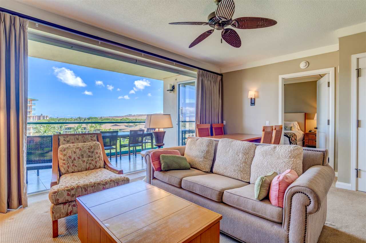 Rarely does a larger one bedroom partial ocean view home become available for resale at Honua Kai. This home offers both magnificent West Maui Mountain views in addition to great partial Ocean Views of Moloka’i. North facing and tucked into a protective corner makes this home poised for great rental demand. Quiet, away from the pool activities and hustle bustle, H538 offers cool northern exposure with no direct sun beating down on you as you enjoy your lanai experience. The owner has updated the home to include carpet replacement, a newer Bosch Washer/Dryer, newer King mattress, newer sofa bed mattress with memory foam, new TV’s and lanai pieces. This is certainly a “must see” if you’re looking for a one bedroom with views!