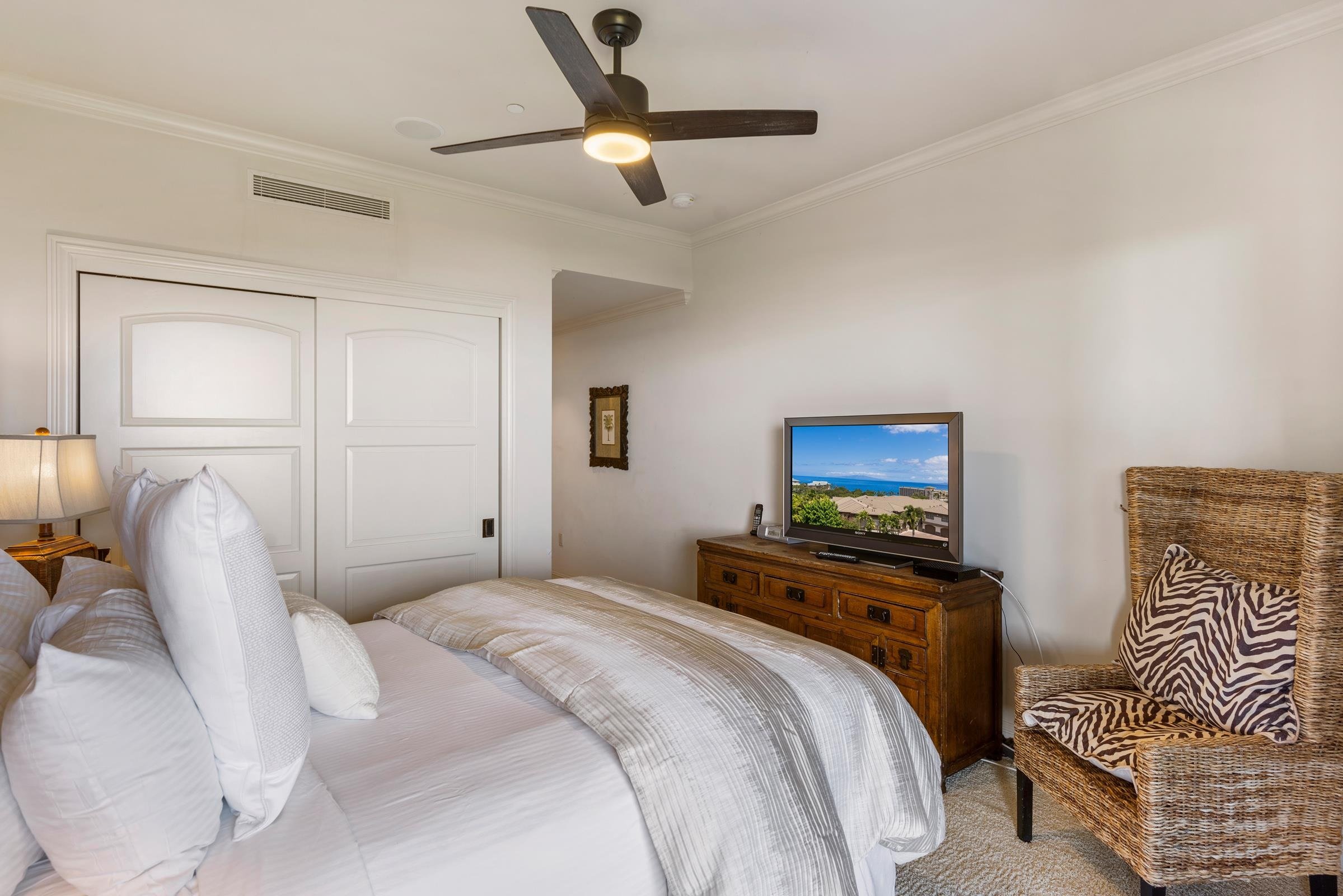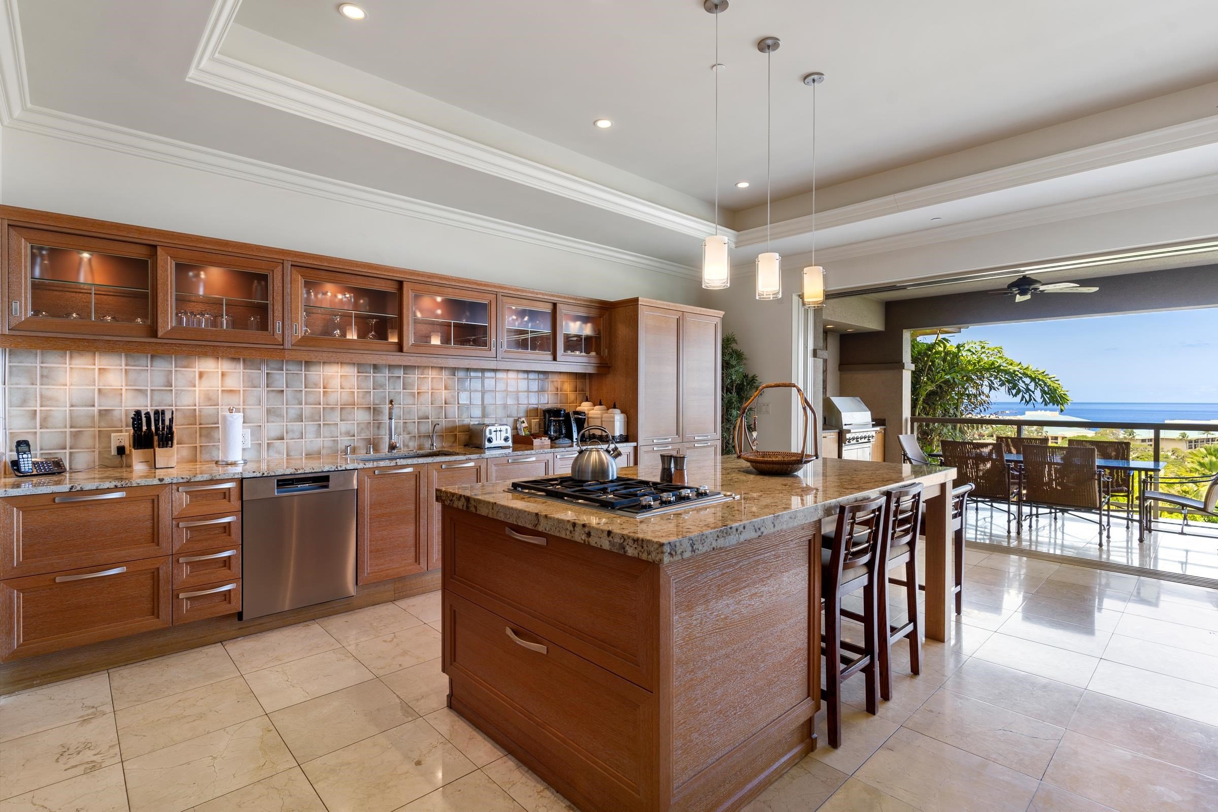 Location, location, location! Epic ocean views and one of the finest villas in the community make Ho'olei 63-2 an exclusive and highly desired opportunity. The Maile floor plan maximizes your outdoor living experience with the spacious covered lanai looking out towards the sea. This 3 bedroom, 3.5 bath luxury villa is ideally positioned to offer 180-degree ocean views and year round sunset vistas. You simply cannot beat the lifestyle. Fleetwood glass doors magically retract into the wall to reveal and allow access to the upper lanai. Tasteful furniture and beautiful decor elements, create a warm and inviting environment. Two Sub Zero refrigerators, four freezers, Wolf stainless steel appliances and grill add to the luxury feel of this contemporary kitchen. A unique fusion of tropical beauty and luxury awaits you in the heart of Wailea’s most sought after vacation rental community. There is also a private elevator inside of the villa with easy access from the attached garage for those who wish to not do stairs. Nearby are all of Wailea’s many resort amenities including the best beaches on Maui, elite shopping opportunities, first class restaurants, golf and tennis. Special properties like this rarely become available.