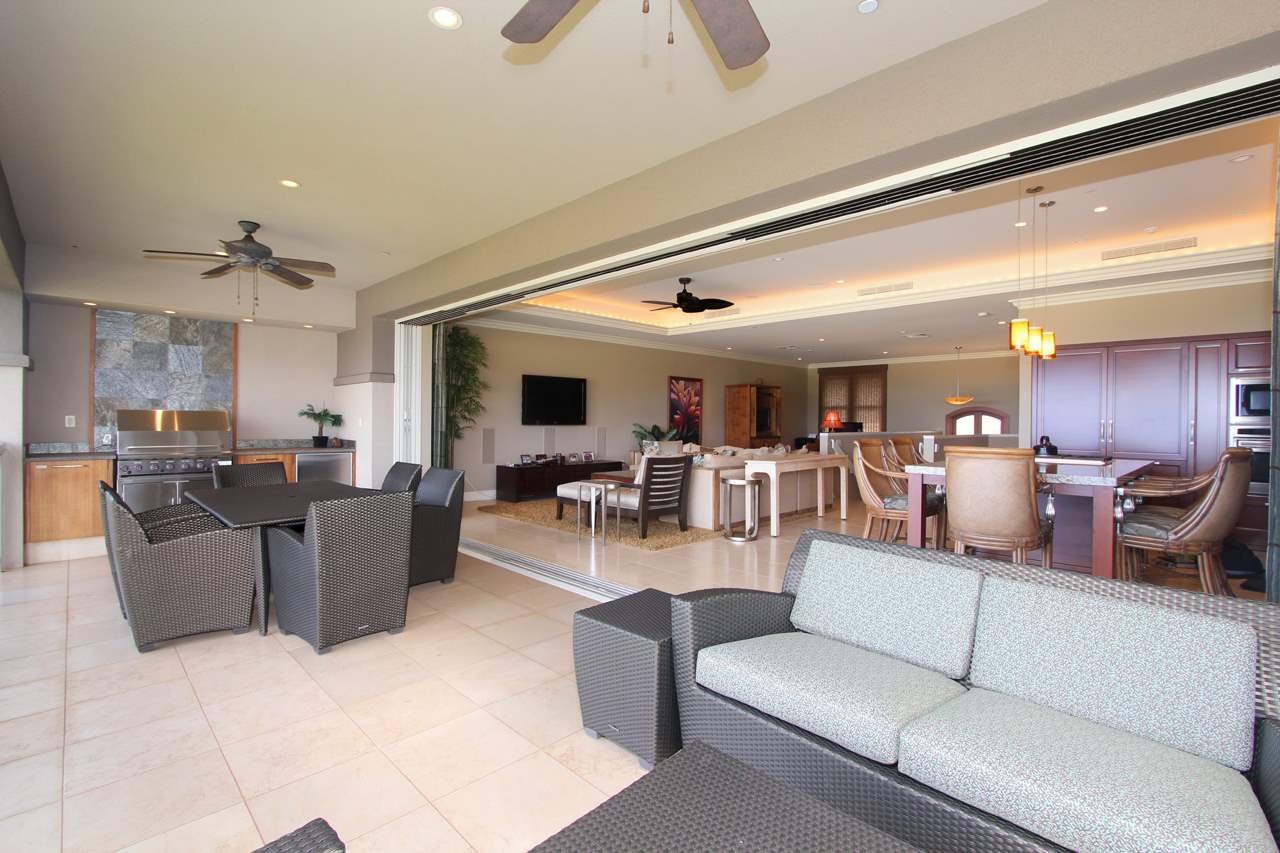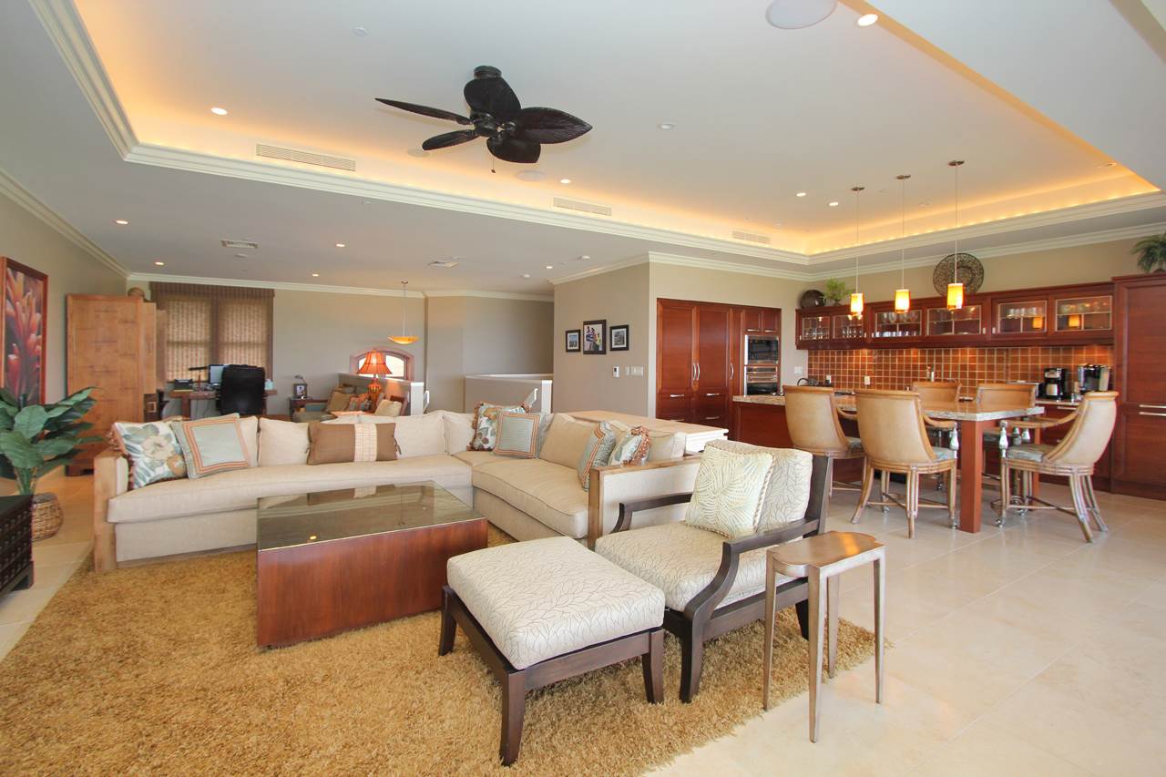 The ocean view from villa 31-4 dominates the living area, kitchen and large lanai in this desirable Plumeria style villa. Enjoy the pristine condition of a villa that was used exclusively as a second home. The Ho’olei community represents a unique fusion of tropical beauty and island lifestyle unparalleled in South Maui. For those seeking the privacy of an upscale residence with the ease of a condominium, Ho'olei offers the ultimate opportunity. This villa also has it's own private elevator and attached garage. Nearby are Wailea's resort amenities, including first-class restaurants, championship golf courses, tennis facilities, elite shopping opportunities, and miles of white sand beaches and ocean recreation. This villa is angled and landscaped for maximum privacy and relaxing ocean views. A stunning carved Mahogany door opens to a wide, grand staircase of honed stone, leading to the great room foyer. An open floor plan with high ceilings, recessed lighting and amazing floor to ceiling windows truly emphasize the spaciousness of this home.