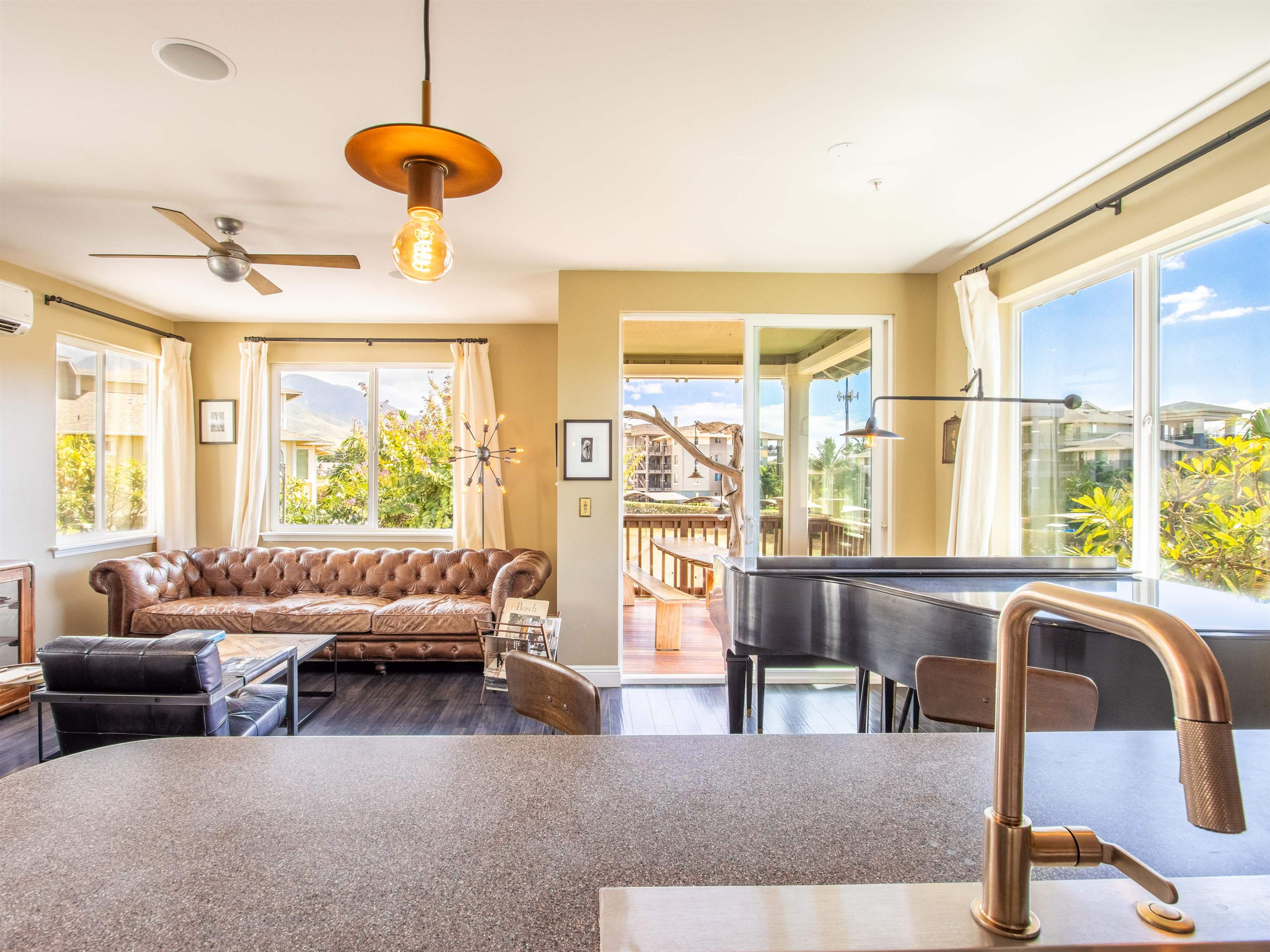 Newly listed Lokahi unit at Ho’onanea with a total of 1,323 square feet of living space. Attached garage with its own door leading directly into the unit. Garage has its own EV plug to charge your electric car (30-amp relay switch). Only 10 of these floor plans exist on the property. Located at the end cap of each building, these units offer more privacy than any others. No detail has been spared on the finishing touches of this unit. Sonos sound system with discrete ceiling speakers. Custom warm ipe (ironwood) deck and table with great sunlight throughout the day and fantastic breeze for evening dinners. Spectacular mountain views from master and guest bedrooms. The apartment is extremely bright and full of sunlight. Originally a three bedroom condo, the owner has converted the third bedroom into a very comfortable den, or salon, where you can enjoy an aperitif, reading time and lounging or perhaps watch a movie and relax with family and friends. This room can easily be converted again into a third bedroom by new owners. Unit comes fully furnished with mostly Restoration Hardware furniture. Grand piano, vintage safe and two custom handmade platform beds that were built by the owner himself. The bed in the master bedroom is made of native eucalyptus logs from Kula, and the guest bedroom bed is made of warm Sapele. All closet doors have been replaced throughout the unit, with solid wood doors. All hardware and lighting have been upgraded with RH solid brass lighting. Built in closet systems in both upstairs bedrooms. All carpet has been removed and replaced with dark hardwood flooring, including the staircase. Baseboard has been added in the entire unit. All linens, cookware and dishes are included.